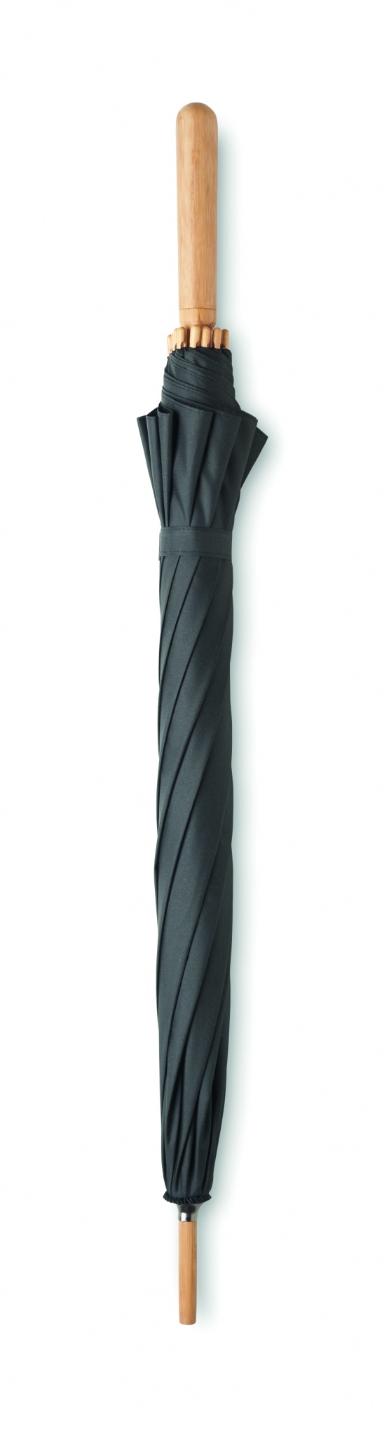 23,5'' Regenschirm aus 190T RPET-Pongee. Windbeständig. Stock, Spitzen und Griff aus Bambus, Stangen aus Fiberglas. Manuelle Öffnung und Schließung. Bambus ist ein natürliches Produkt, es kann daher zu leichten Abweichungen in Farbe, Dekor und Maßen kommen.
