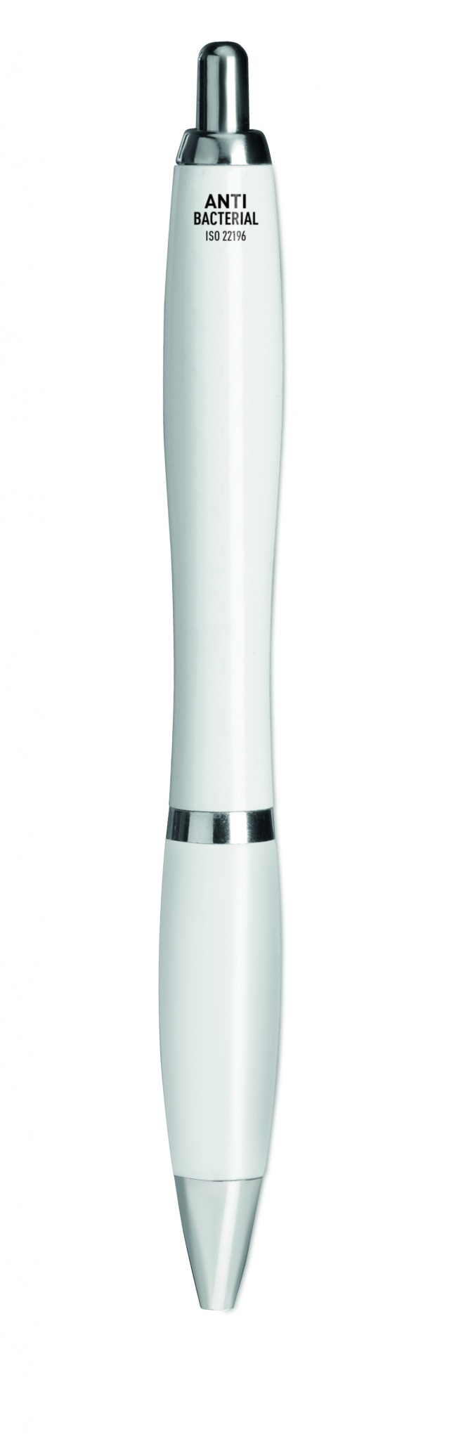 Druckkugelschreiber aus ABS mit antibakteriellem Schaft. Enthält einen speziellen Zusatz (Nano-Silber), der das Besiedeln der Oberfläche durch Bakterien verhindert. ISO 22196. Blaue Tinte.