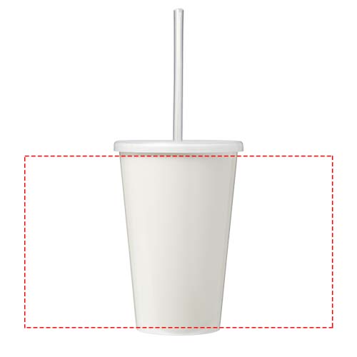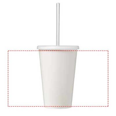 Doppelwandiger Isolierbecher. Die äußere Schicht des Bechers ist aus recyceltem Kunststoff hergestellt. Der Becher verfügt über ein vollfarbiges, umlaufendes In-Mould-Label Design, das an das Produkt angepasst ist – für Strapazierfähigkeit und Haltbarkeit. Lieferung mit PE-Strohhalm. Das Fassungsvermögen beträgt 350 ml. Hergestellt in Großbritannien. Verpackt in einem kompostierbaren Beutel. BPA-frei.