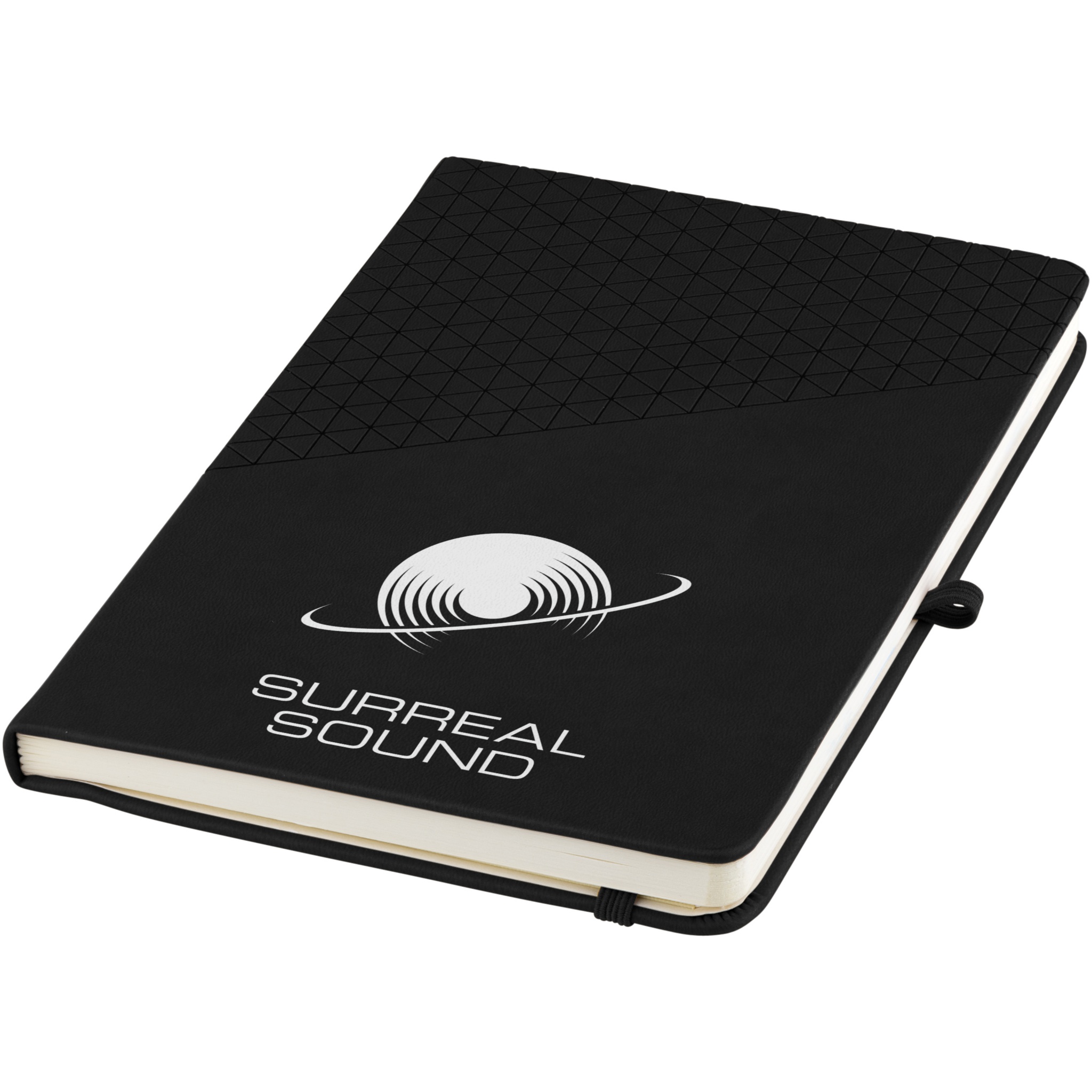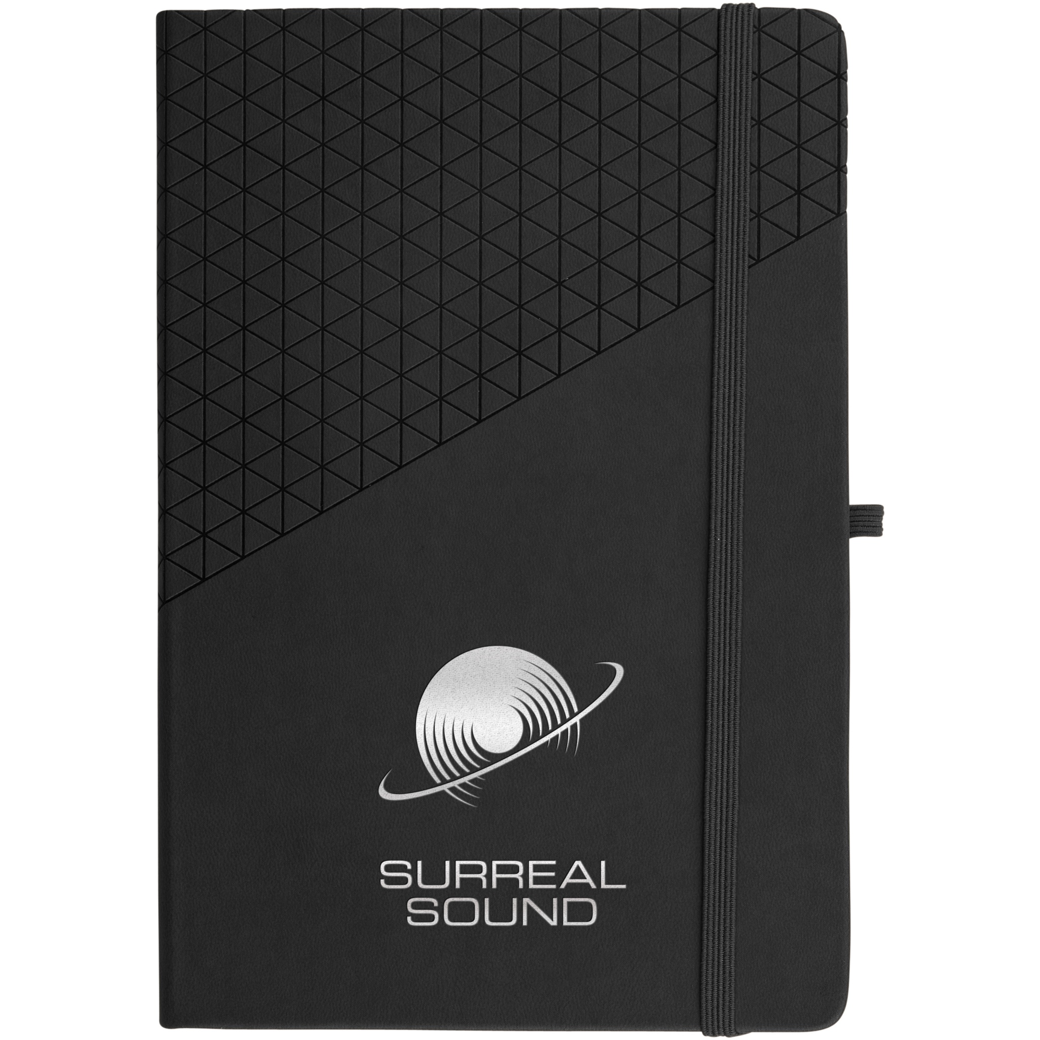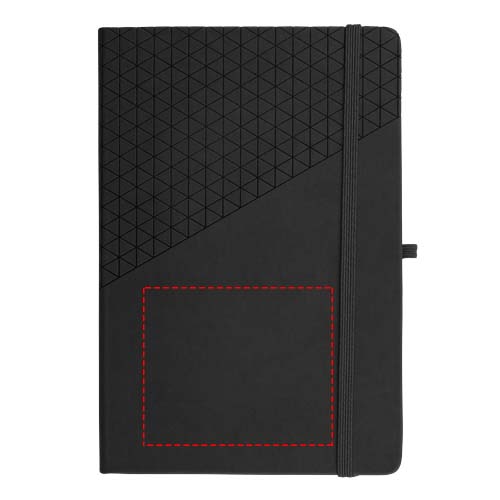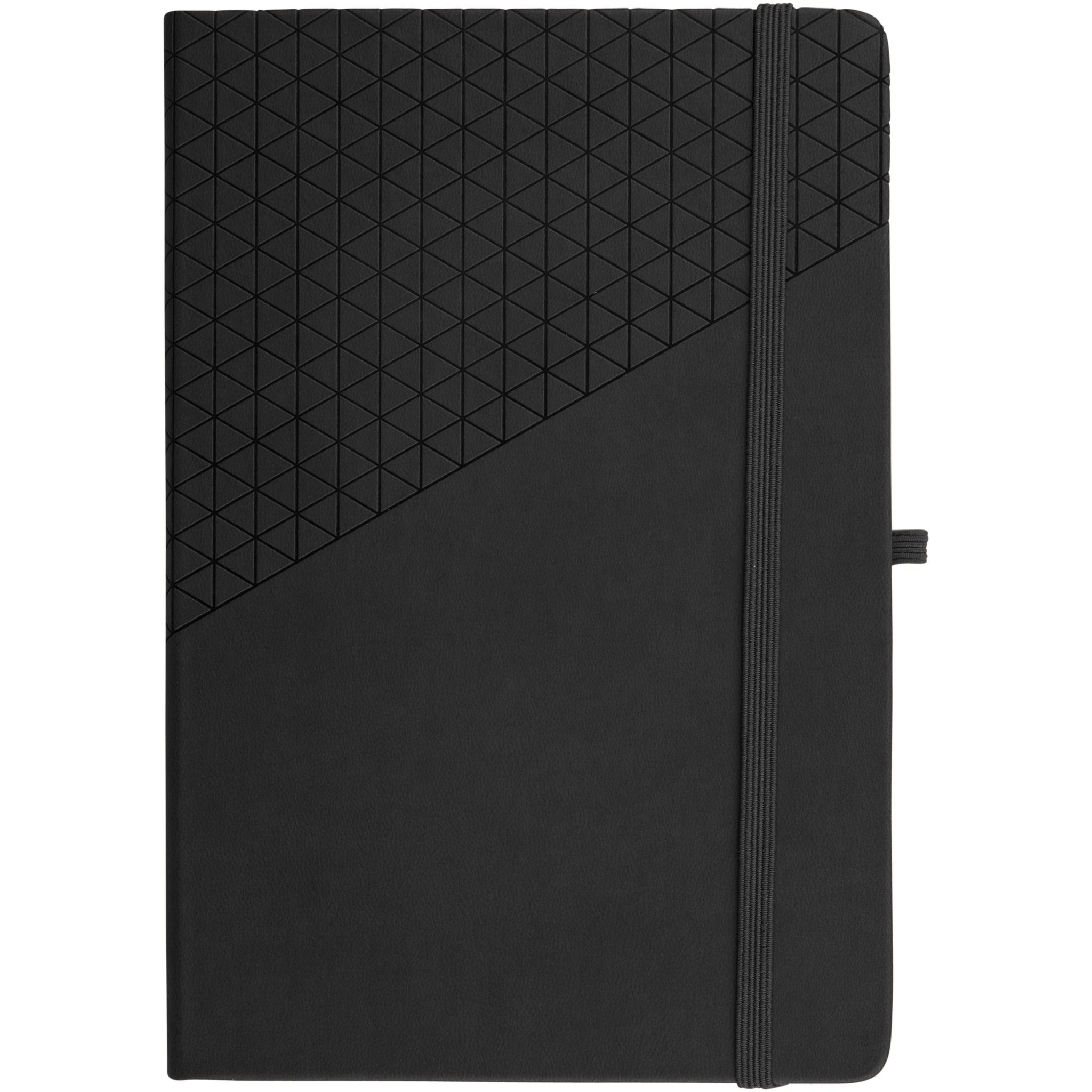 A5 Notizbuch mit geometrischem Soft Touch Muster Design. 80 Blatt (80 g/m²) liniert, Leseband, elastischer Verschluss und Stiftschlaufe.