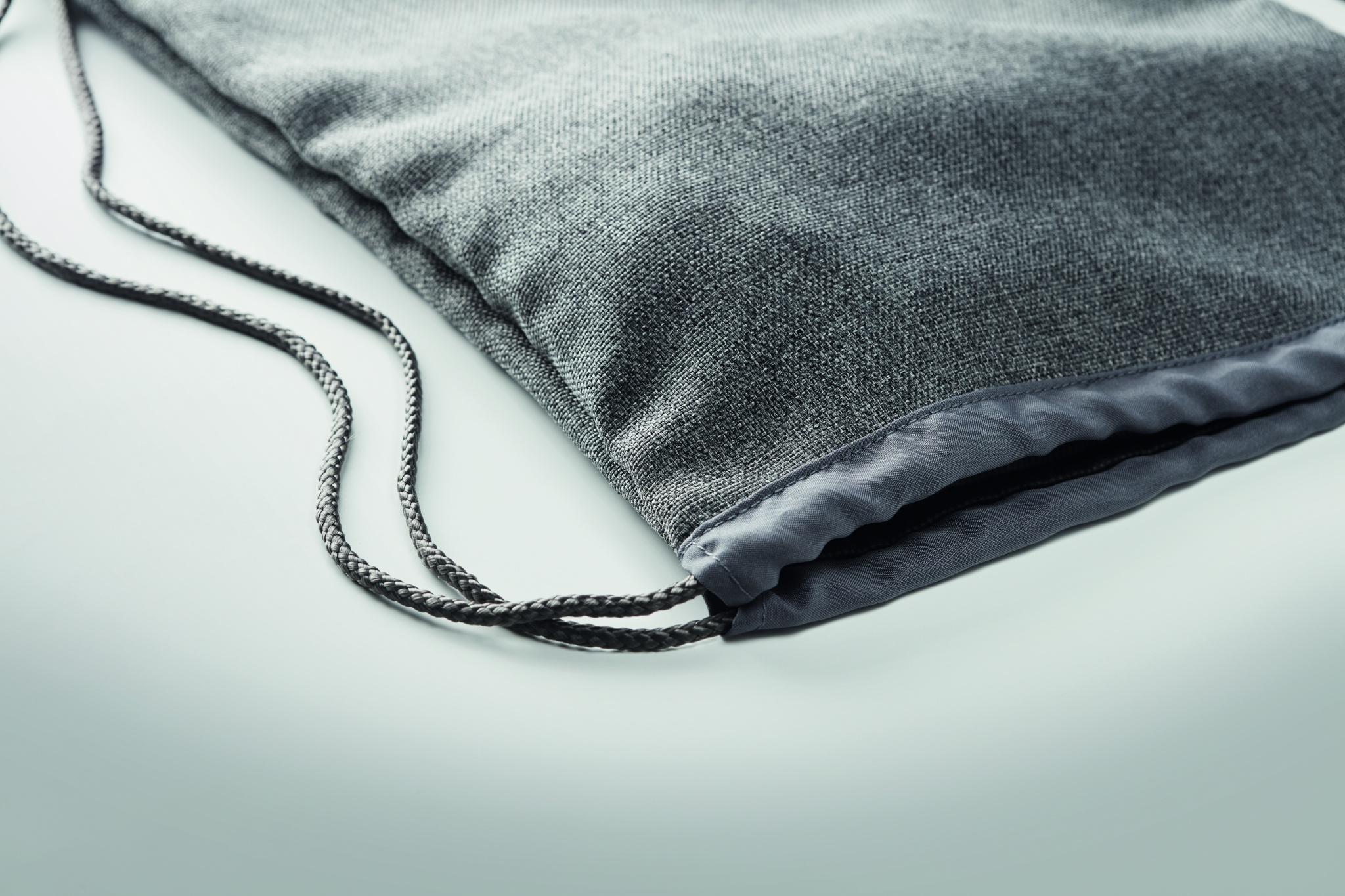 Drawstring bag in 1200D heathered polyester. It has soft touch finish.