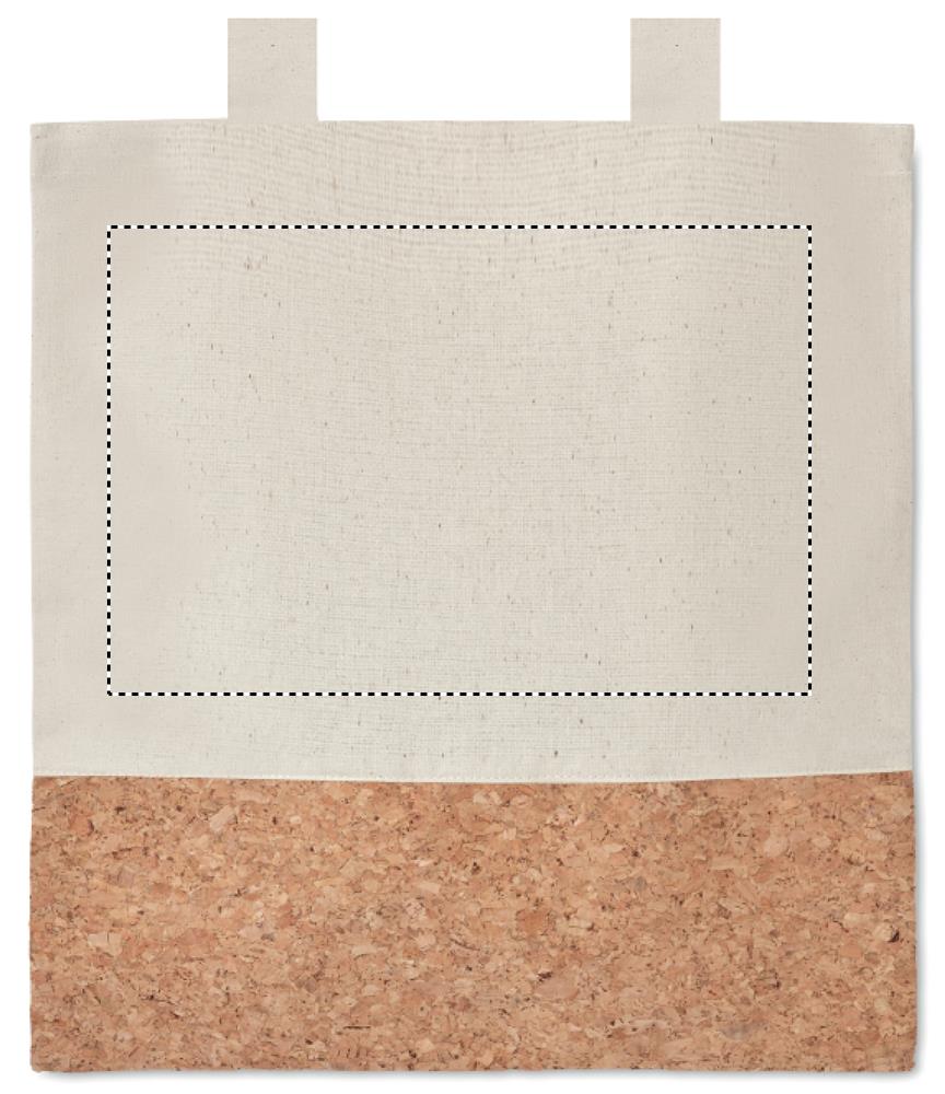 Twill cotton shopping bag with a cork detail. Long handles. 160 gr/m². Cork is a natural material, due to its structural nature and surface porosity the final print result per item may have deviations. Produced under a certified standard for the use of harmful substances in textile.