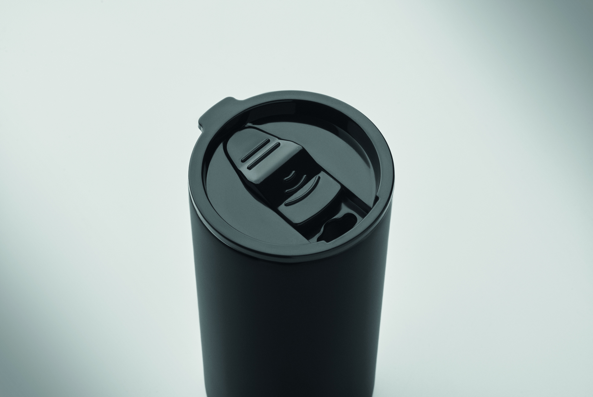 Refillable 2 in 1 bottle in Tritan and double wall tumbler part in recycled stainless steel (90 % recycled and 10% stainless steel). 2 lids in PP material. Capacity total 610 ml, tumbler 350 ml.