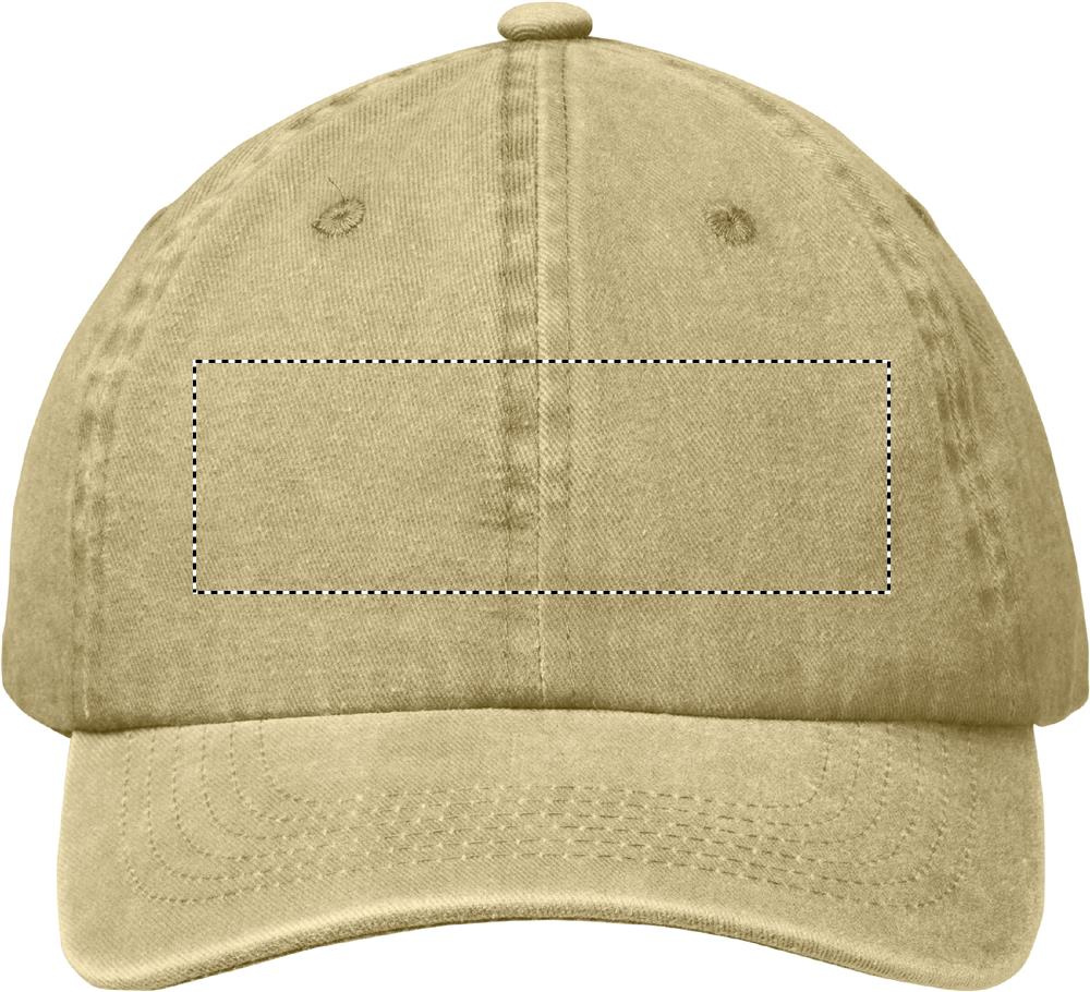 Vintage 6 panel baseball cap in washed cotton. 265 gr/m² with adjustable hook and loop closure. 6 stitched eyelets in matching colour. Size 7 1/4.