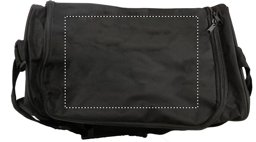 Sport or travelling bag in 600D polyester with front pocket and adjustable and detachable shoulder strap.