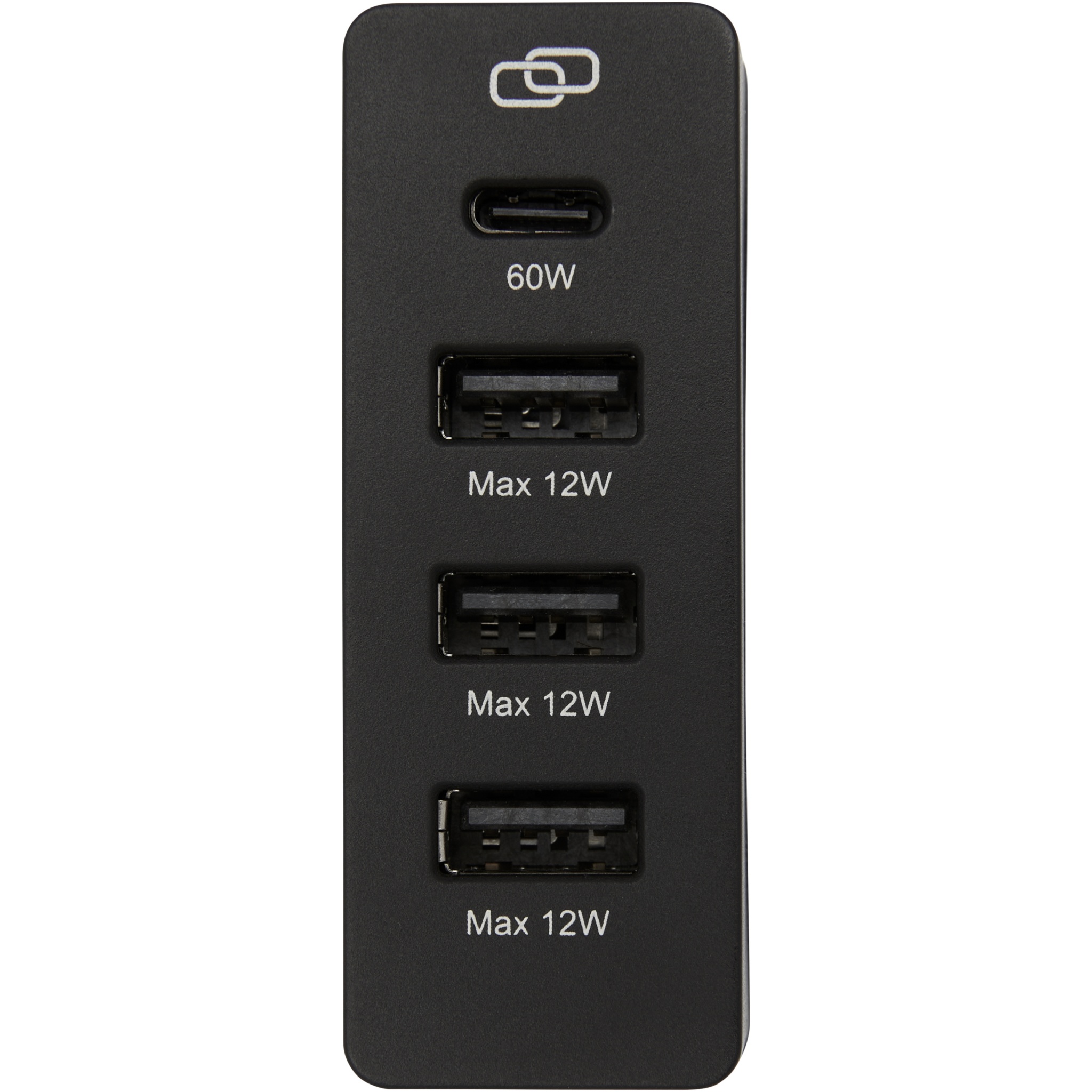 The ADAPT PD power station is an ultra fast solution for a more sustainable and more efficient charging experience. Made with recycled plastic, this power station combines sustainability and functionality in one sleek design. It comes with both EU and UK power cords, ensuring compatibility with various outlets (AC 100-240V 50/60Hz). Featuring 3 USB-A ports and 1 USB-C port, this power station provides the ultimate formula for simultaneous charging at rapid speed. The USB-C port supports multiple output voltages including 5V/3A, 9V/3A, 12V/3A, 15V/3A and 20V/3A, with a maximum power of 60W. The USB-A ports deliver a steady output of 5V/2.4A (12W max.) each. The Type-C and USB-A combination can provide a maximum power of 72W. Delivered in a premium kraft paper box with a colourful sticker.