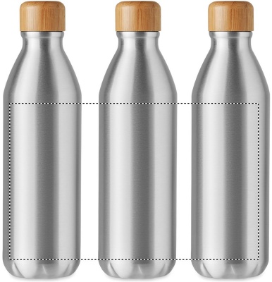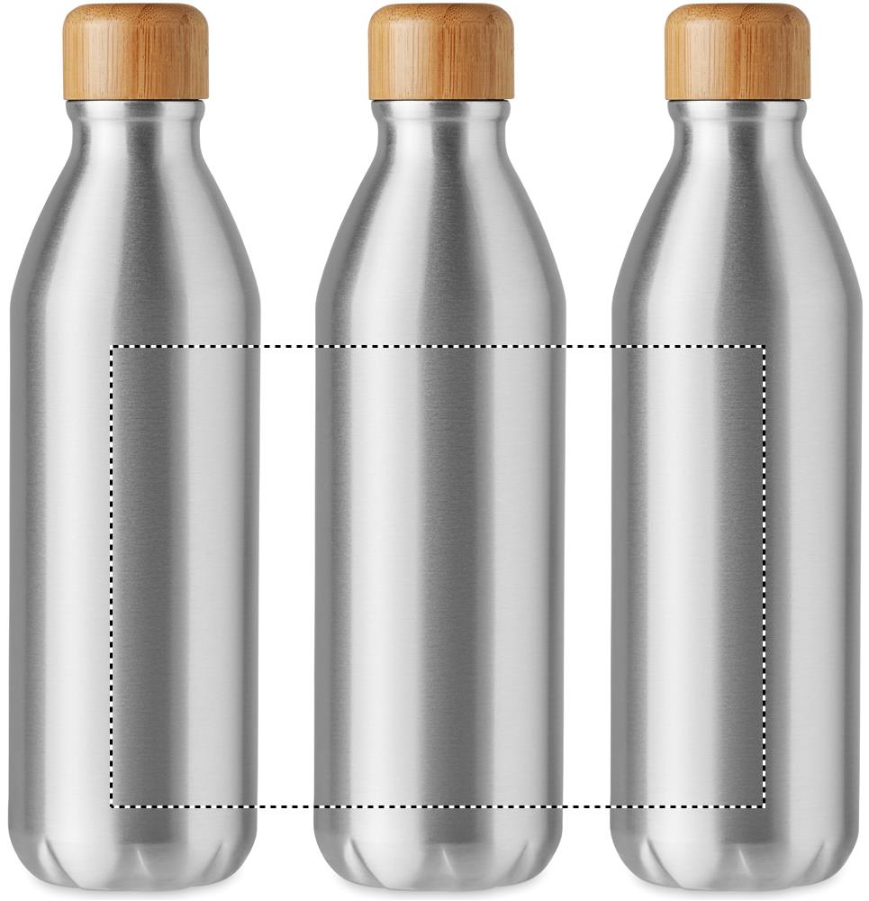 Single wall Aluminium bottle with bamboo. Capacity: 550 ml. Bamboo is a natural product, there may be slight variations in colour and size per item, which can affect the final decoration outcome.