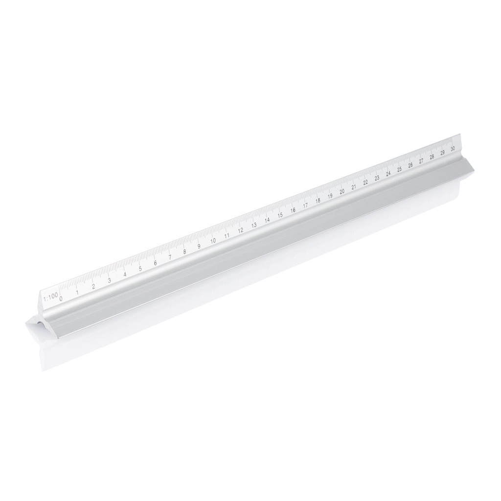 Aluminium rule with 5 different scales (1:20;1:25;1:50;1:75;1:100), one side unprinted for advertising purpose.