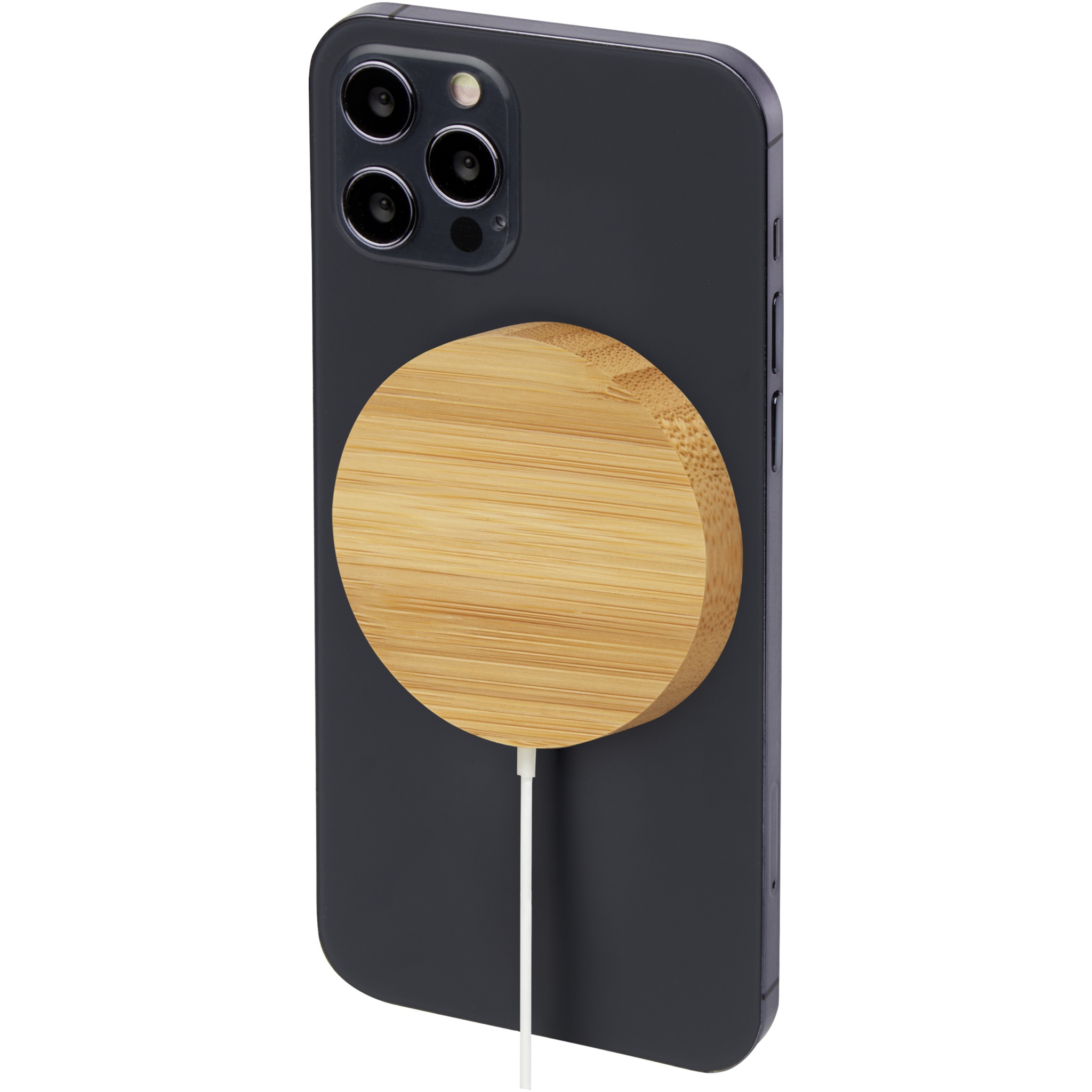 Wireless magnetic bamboo charging pad that can be attached to the back of the phone (iPhone 12/iPhone 12 Pro /iPhone 12 Pro MAX) to charge the device. The 10W wireless charger is compatible with all Qi devices (iPhone 8 or above and Android devices that supports wireless charging), and for other phones it can be used as a regular wireless charging pad. Comes with an additional metal ring with double tape to make the item compatiable with any other smartphone that have wireless charging capability. Delivered in a gift box with an instruction manual (both made of sustainable material).