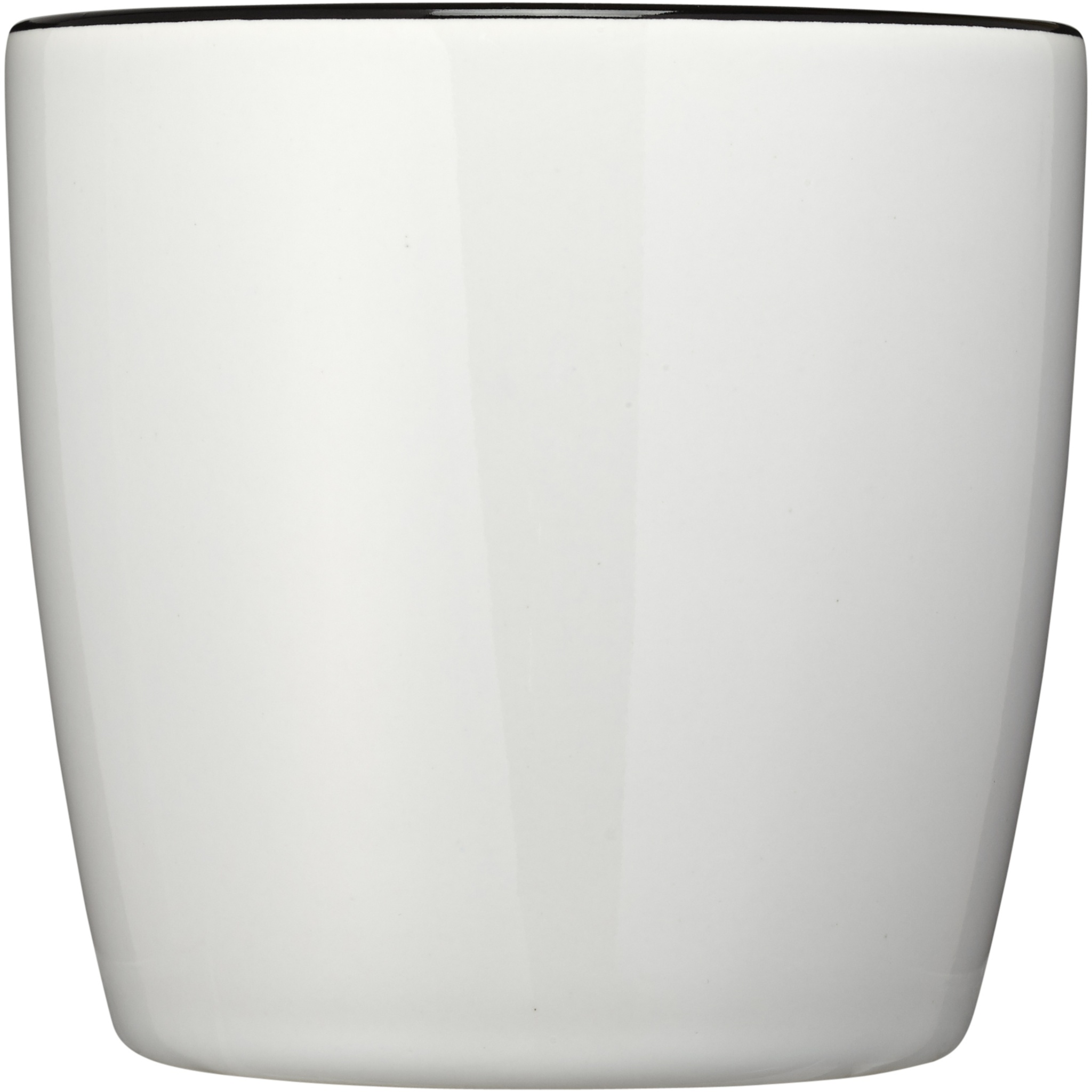 Drinking coffee from a beautifully designed mug always tastes better. So why not choose the Aztec ceramic mug? The glossy exterior provides enough space for adding a logo or message, and the colour accent on the interior makes the 340 ml mug stand out even more. The Aztec mug (including print) is dishwasher safe according to EN12875-1 for at least 125 washes.