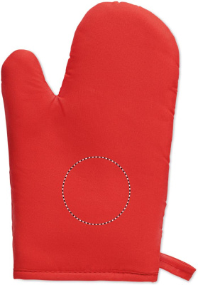 Baking utensils set. Including a polycotton (95% polyester and 5 % cotton) oven glove, whisk and spatula in silicone.