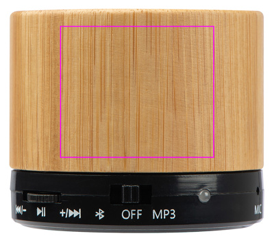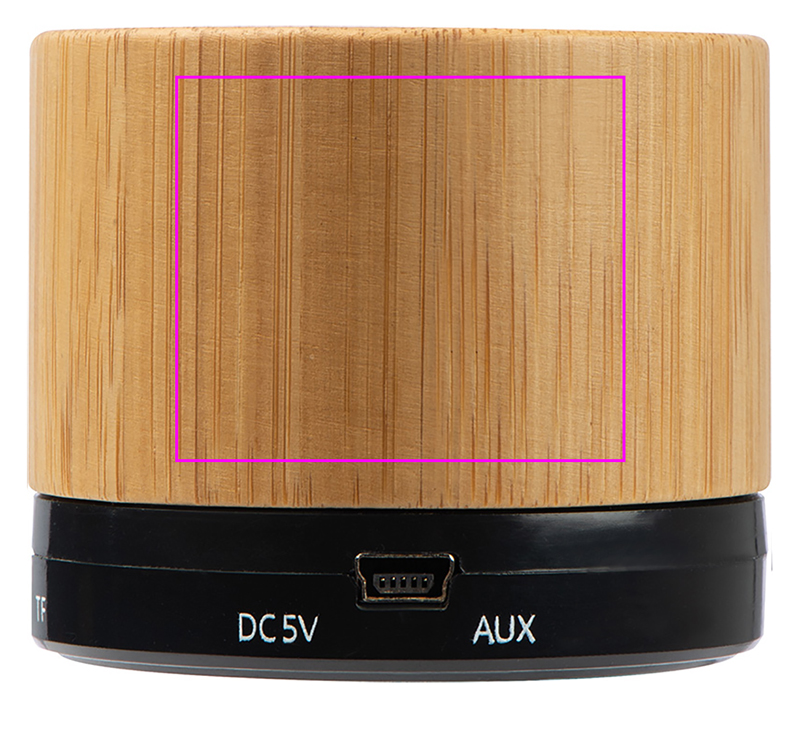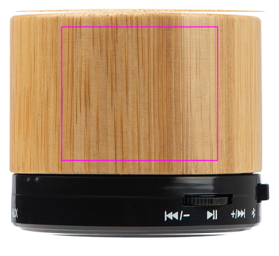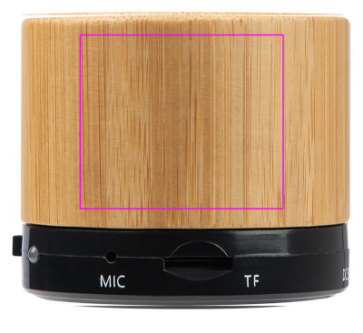 Stylish Bluetooth speaker in bamboo housing incl. USB charging cable. Other features: Micro SD card slot to play MP3 files, AUX connection. Battery life approx. 40-70 minutes. We laser your logo on the case.