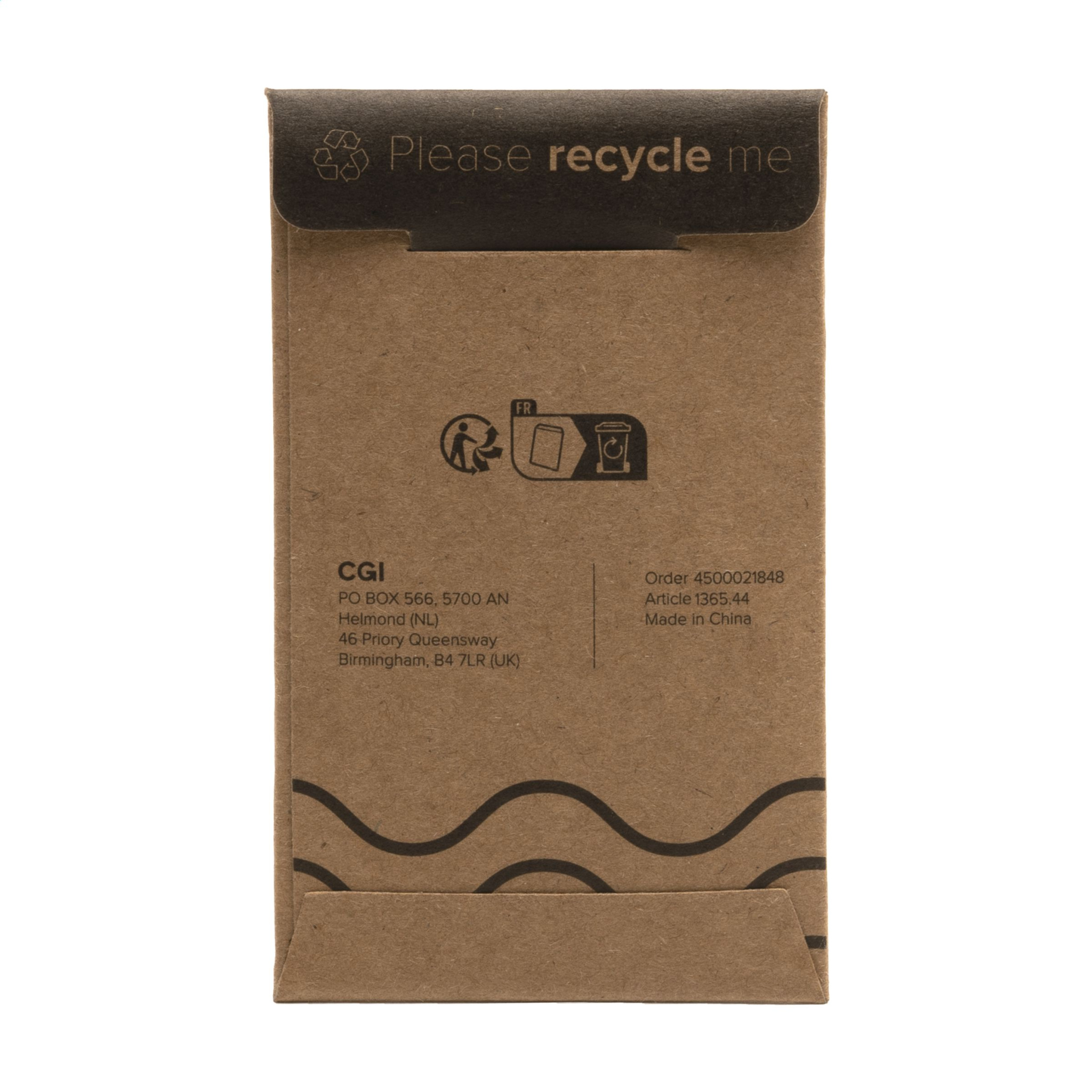 Circular, polished metal and bamboo keyring. A sturdy design. Each item is supplied in an individual brown cardboard envelope.