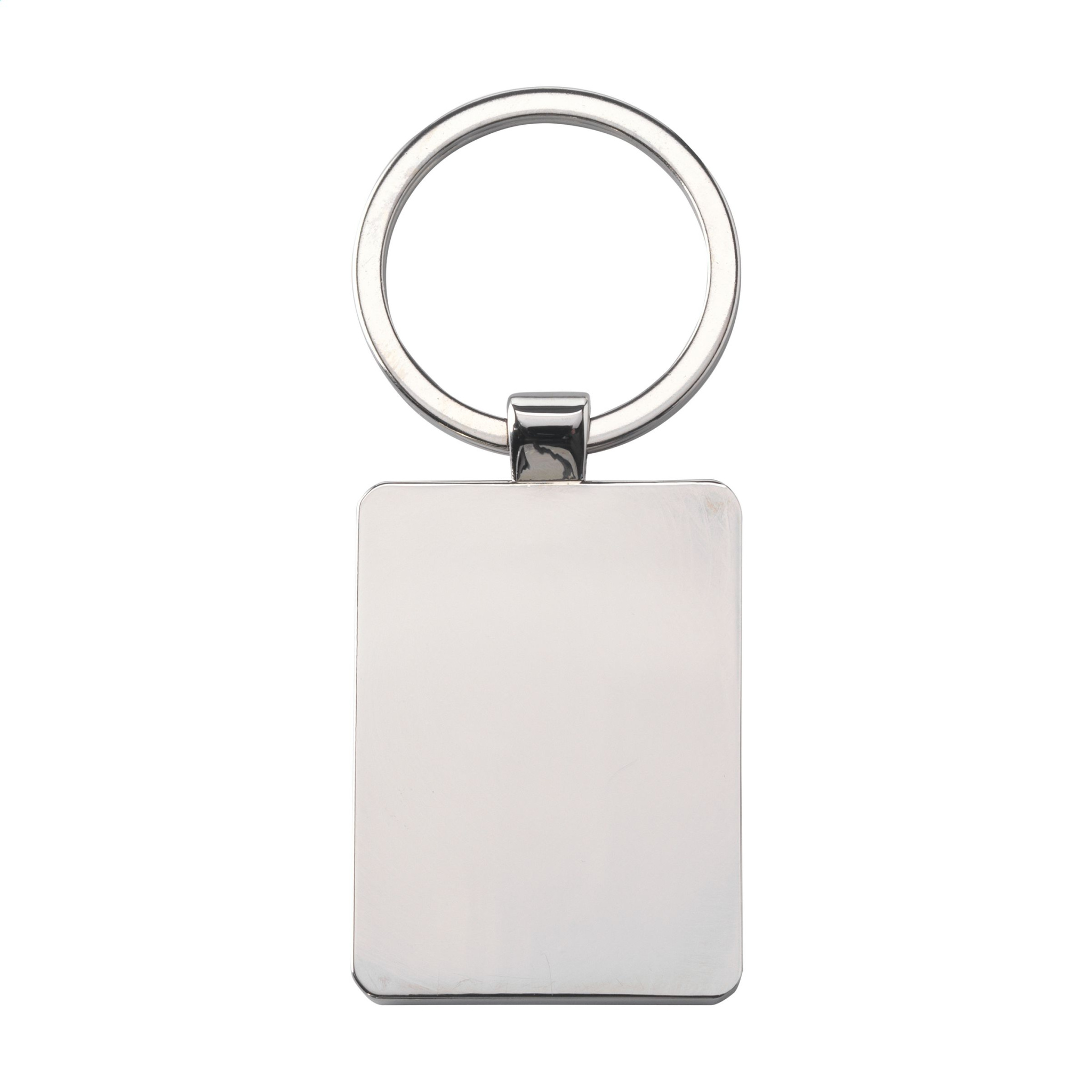 A rectangular, polished, metal keyring with bamboo wooden inlay and a sturdy keyring. Each item is supplied in an individual brown cardboard envelope.