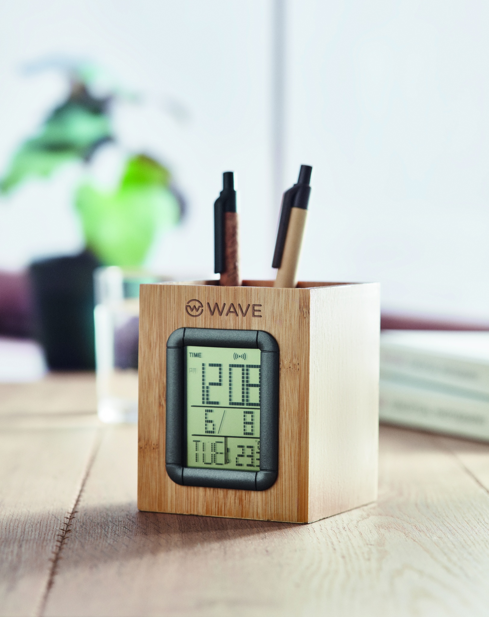 Products Small Giveaways Smart clamps Bamboo pen holder and LCD clock