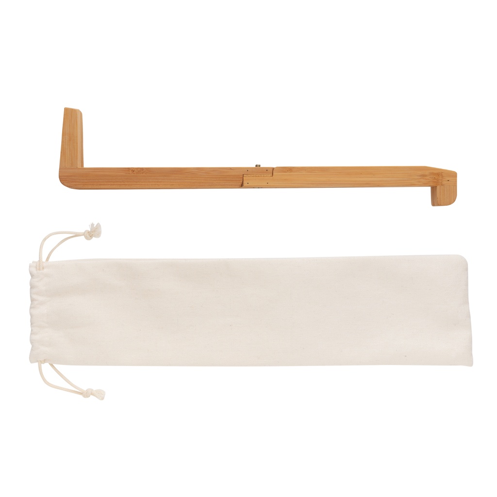 This portable laptop stand are an ideal accessory when working outside the office. Work comfortably anywhere! By elevating the laptop, the air can circulate efficiently and ensure the screen is at a perfect eye level. Foldable and easy to take anywhere in the cotton pouch. Made with beautiful bamboo. The laptop stand is compatible with tablets and laptops up to 15.6 inch. It is not only suitable as laptop legs but also ideal as cookbook stand in the kitchen.