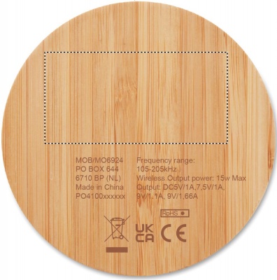 Logo trade promotional merchandise picture of: Bamboo wireless charger 15W