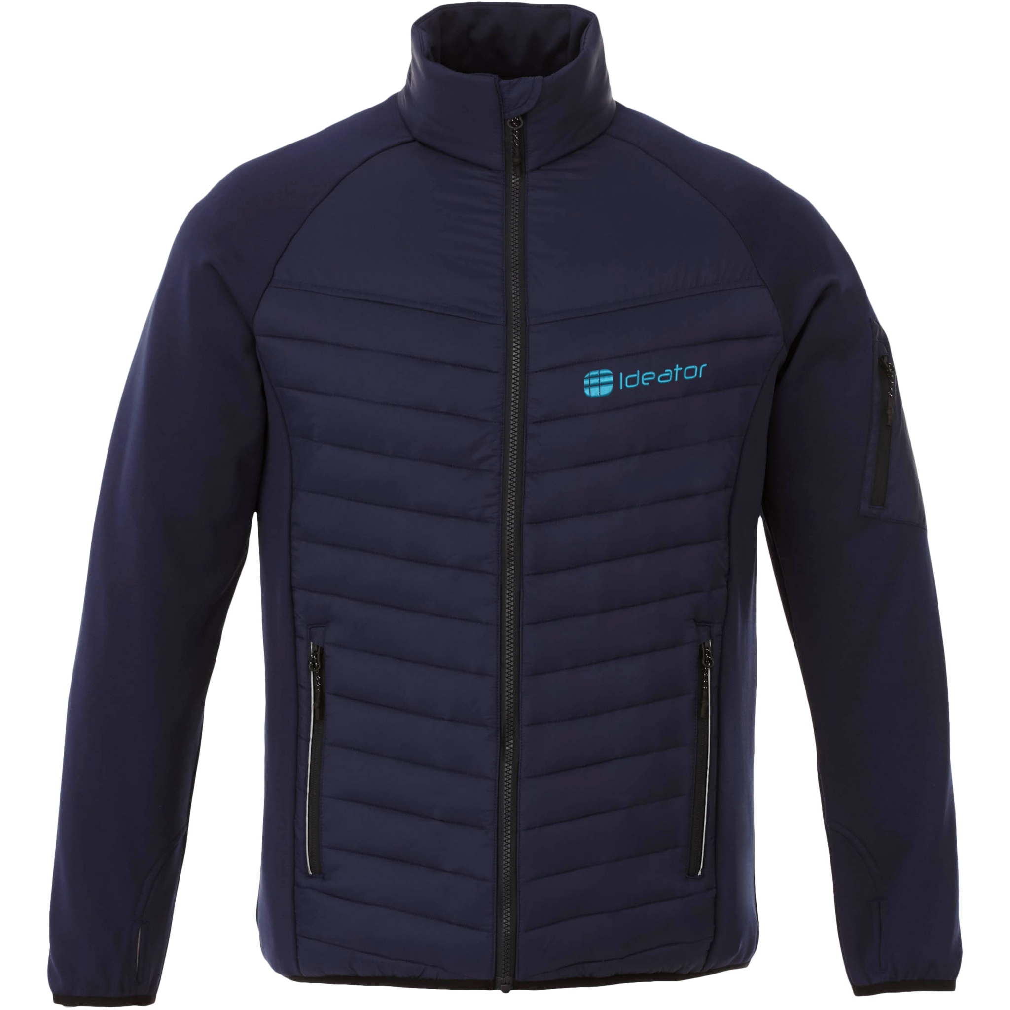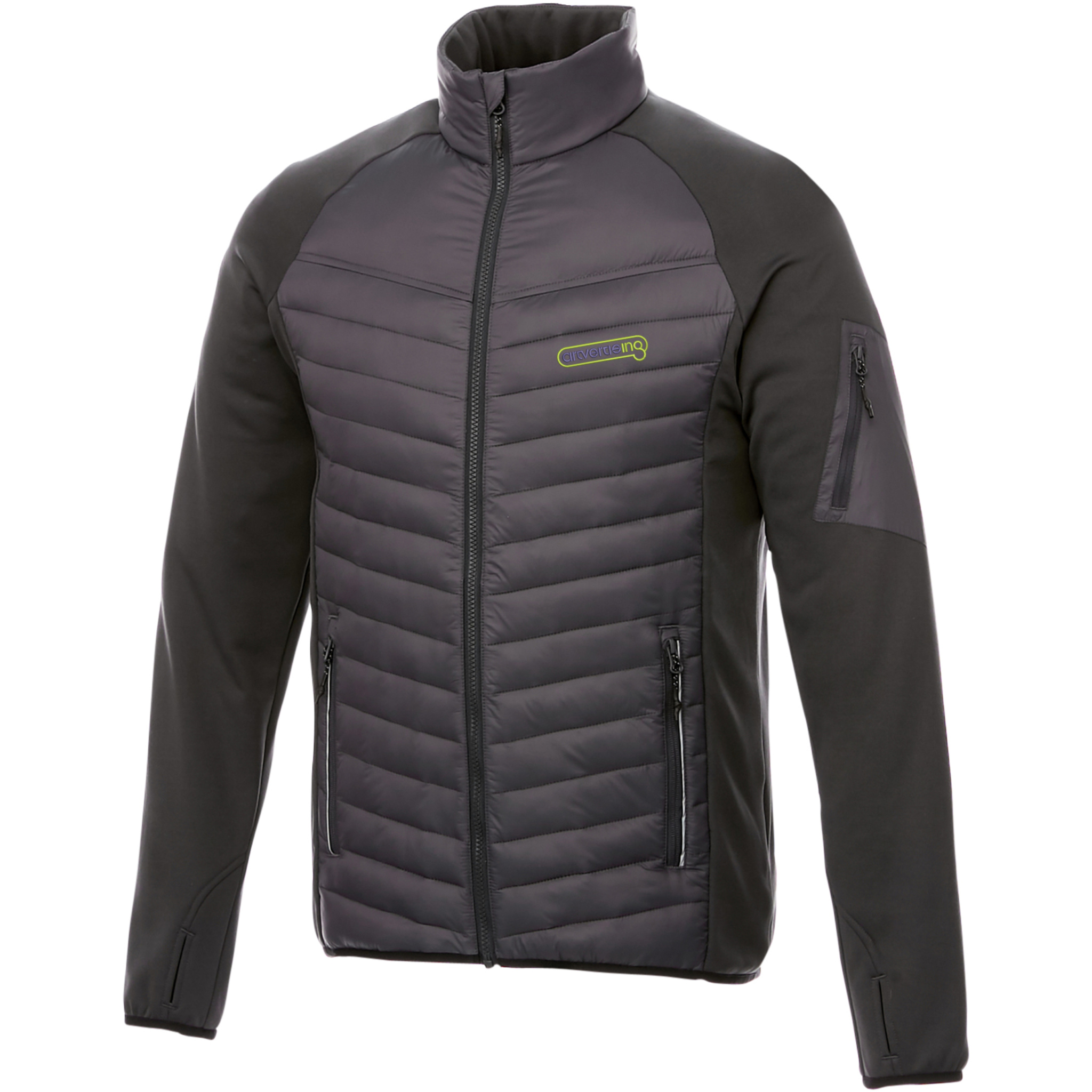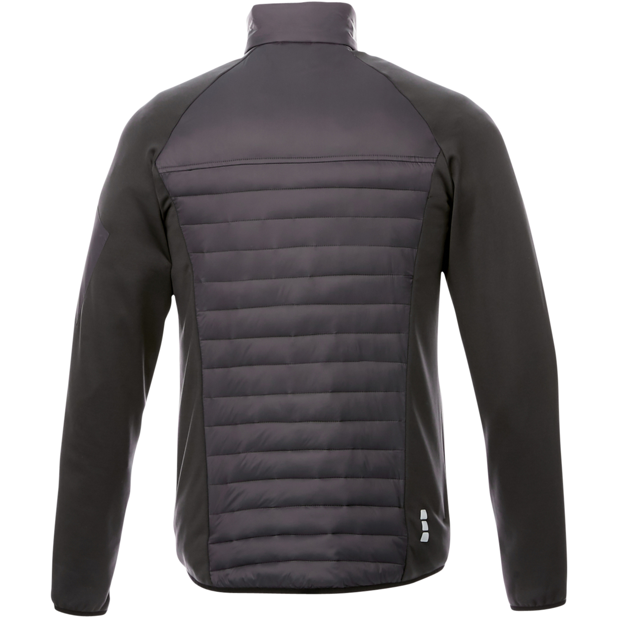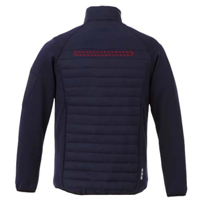 The Banff men's hybrid insulated jacket – a perfect fusion of style and performance. The inner stormflap ensures that the wind does not come through the jacket, and the dropped back hem adds an extra touch of coverage for added warmth. The elasticated binding in a contrasting colour adds a stylish accent while ensuring a secure fit. The jacket's dull cire 380T woven fabric has a water repellent and downproof finish, made of nylon (38 g/m2). The contrast fabric is an interlock knit made of polyester and elastane (245 g/m2), adding flexibility and comfort. The fake down insulation of polyester provides lightweight warmth, perfect for chilly days.