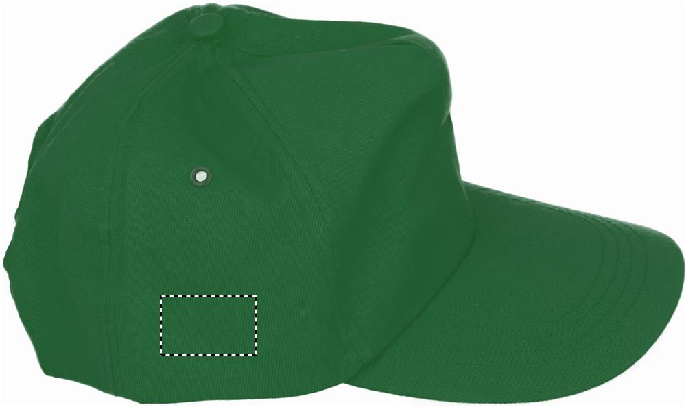 5 panel baseball cap in cotton twill 160 gr/m2 with adjustable plastic snap closure. 2 metal eyelets with matching colour plating. Size 7 1/4.