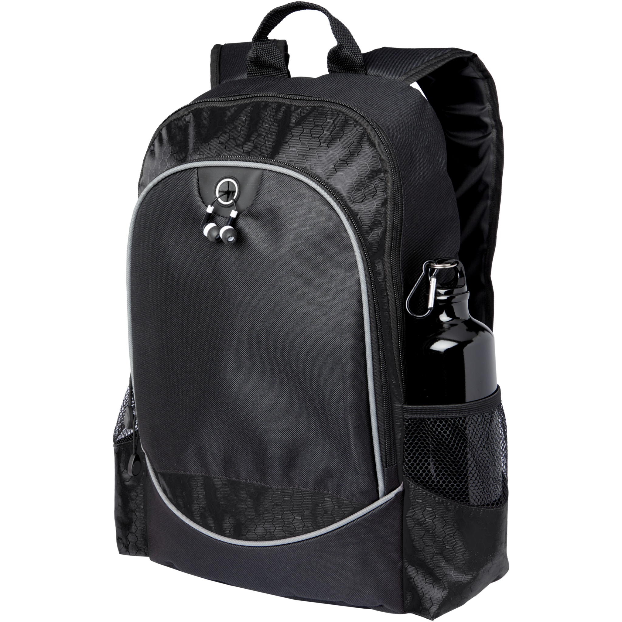 Zippered main compartment holds most 15" laptops and includes padded compartment for your iPad or tablet. Large front zippered pocket has organization and earbud access. Features two side pockets. Reinforced carry handle and adjustable padded shoulder straps. Accessories not included.