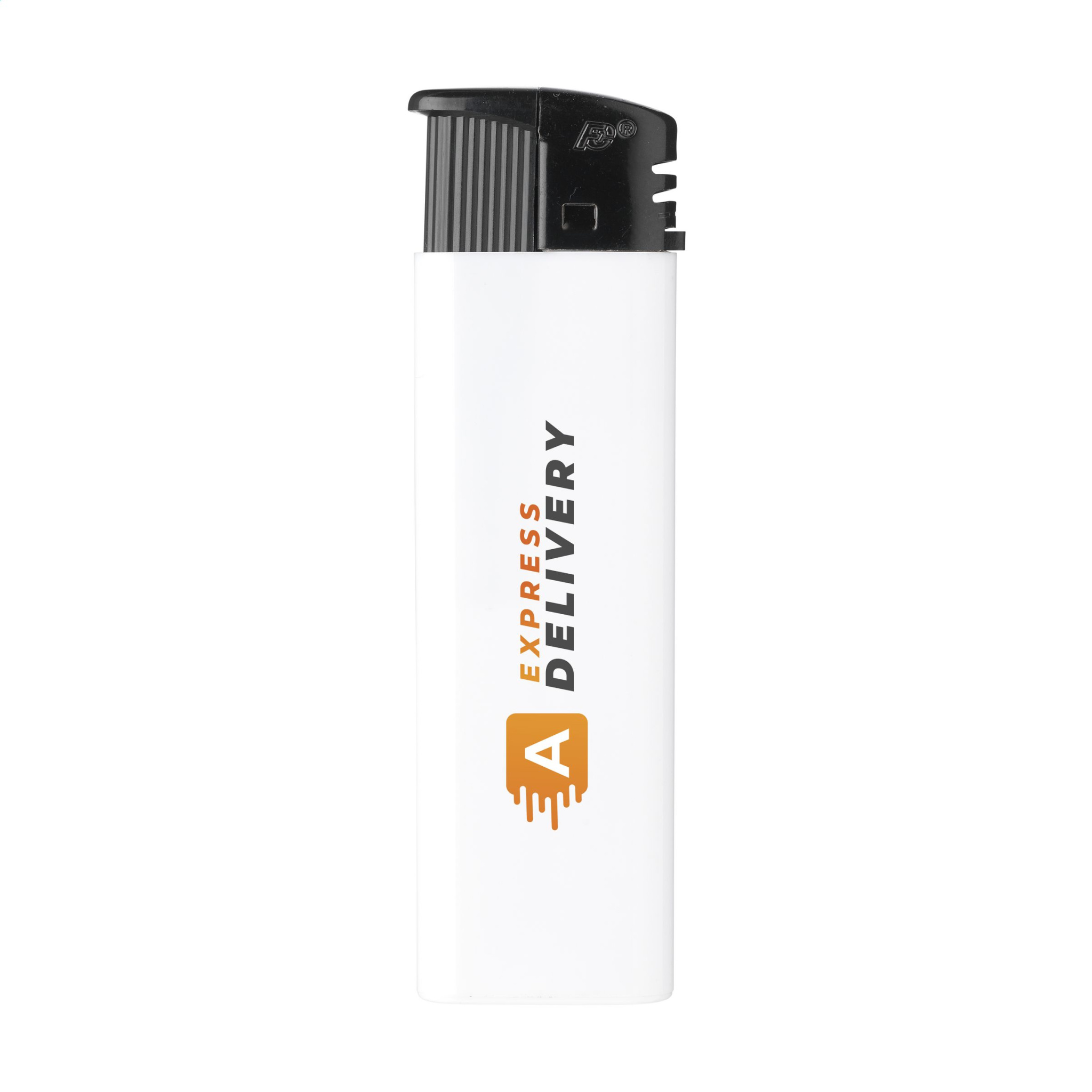 Electronic, refillable lighter of the brand Flameclub® with adjustable flame. Equipped with child lock. NEN-certified: EN13869. TÜV-certified and ISO-certified: ISO9994.