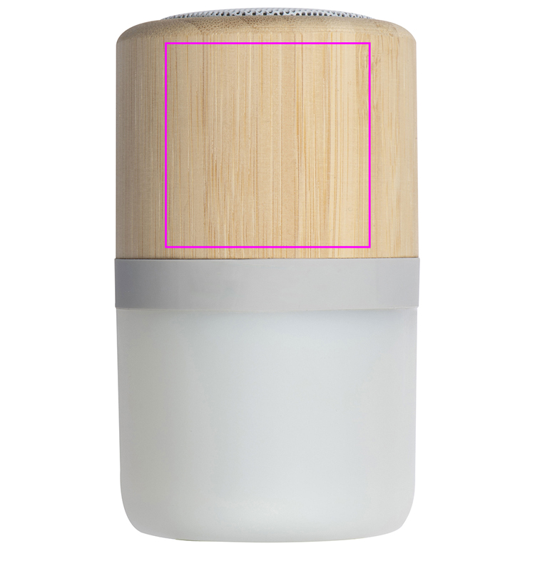 Bluetooth 5.0 speaker made of ABS and bamboo with color-changing LED light, 300 mAh battery, charging time 2 hours and a range of up to 10 meters. Your logo will be placed onto the speaker.