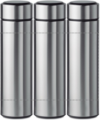 Double wall stainless steel insulating vacuum bottle. It has an LED touch thermometer incorporated in to the top of the lid and tea infuser inside. 1 replaceable CR2032 battery included. Leakproof. Capacity: 450 ml. Leak free.