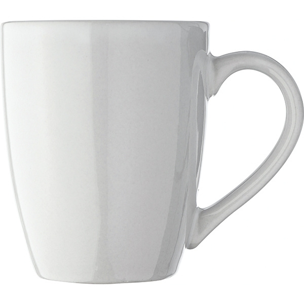 Nice shaped ceramic mug (300ml). We will place your logo by ceramic transfer.