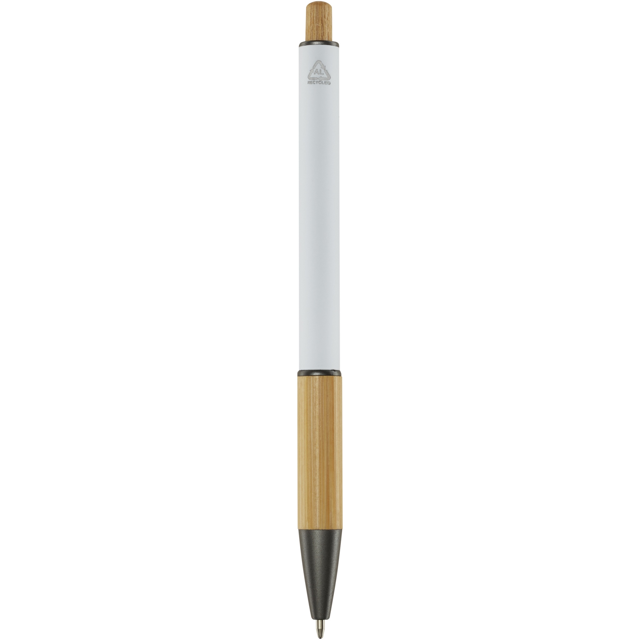 The Darius ballpoint pen is made from recycled aluminium, which requires less energy than producing aluminium from raw materials. It also reduces the amount of waste in landfills and helps to conserve natural resources aiming to reduce greenhouse emissions. The push button and the bottom part of the barrel is made of bamboo. Ink colour: Black. Writing length: 800 metres. Nib size: 1.00 mm.