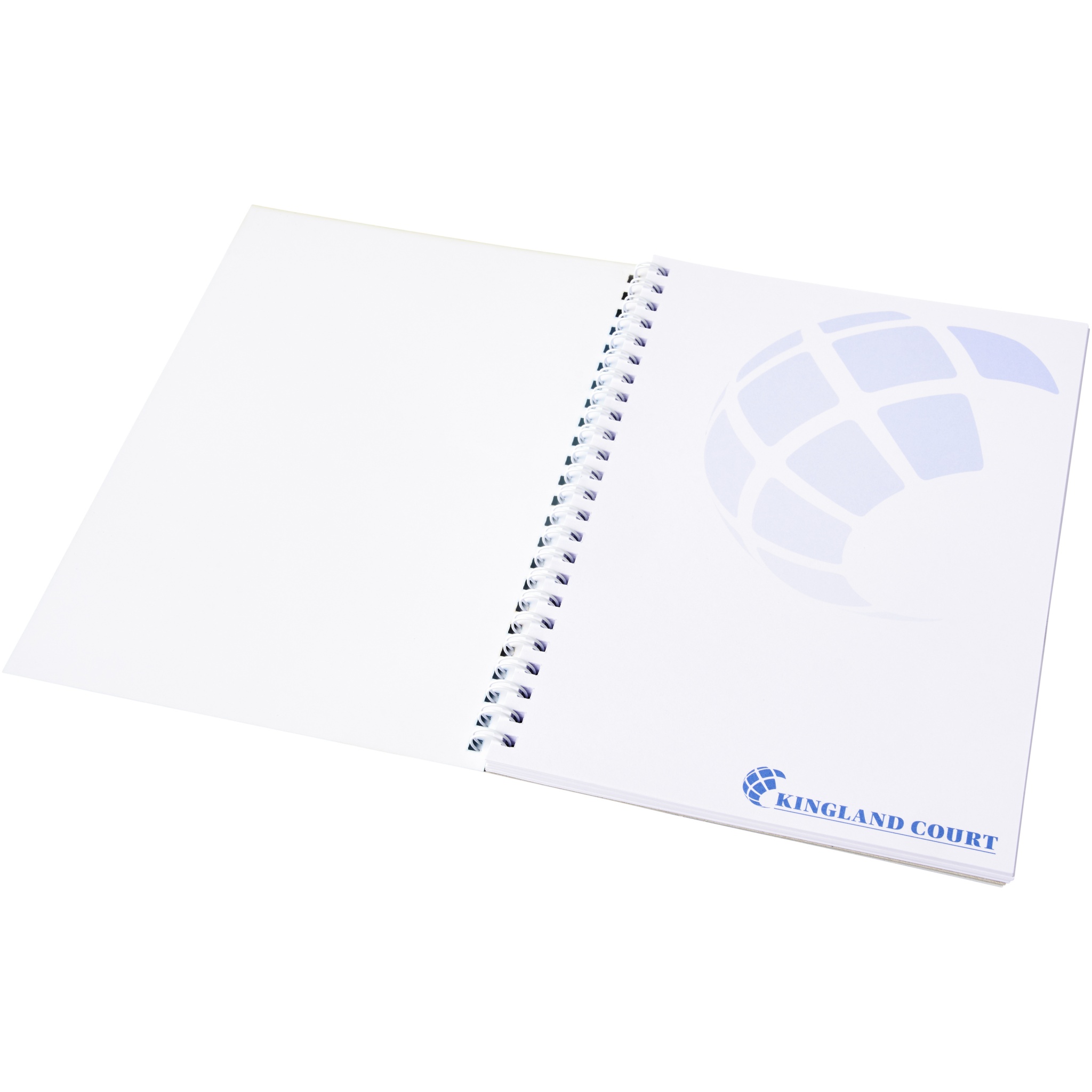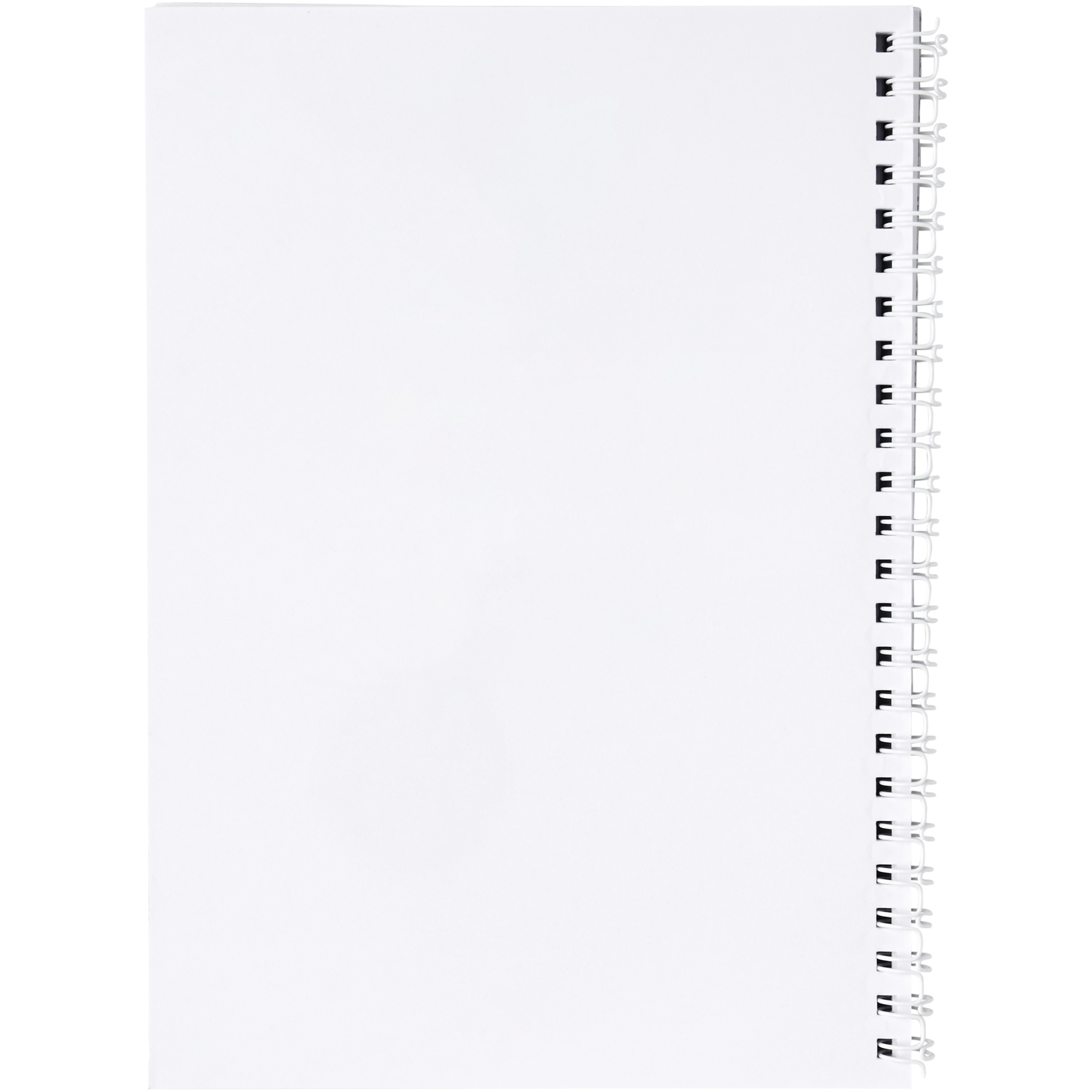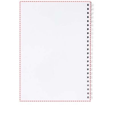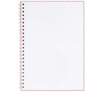 Desk-Mate® spiral A5 notebook. Standard model includes 50 blank sheets of 80 g/m2 paper, a glossy card front cover (250 g/m2) and a 450 micron transparent polypropylene cover. Black or white wire. Also available with 100 sheets. You can customise the pages of this versatile notebook with any design - so whether you want lined paper, squares or dots - anything is possible!