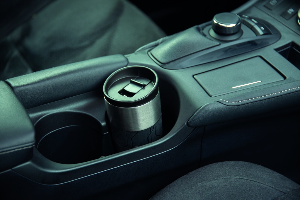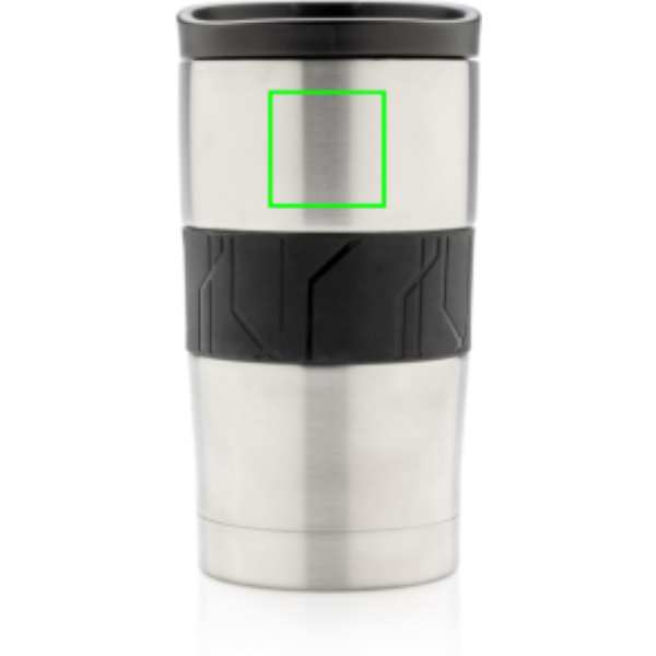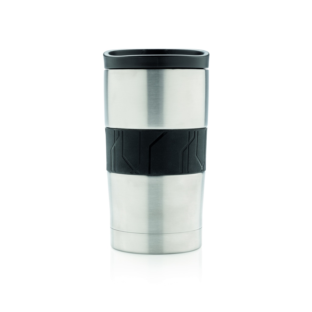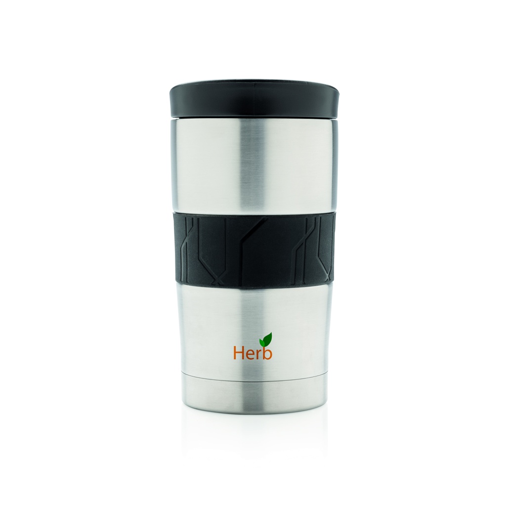 Leakproof vacuum mug made out of 304 stainless steel with silicone grip and slider lid. Dishwasher safe and suitable for most coffee machines. Convenient one-hand drinking. Content: 300ml.