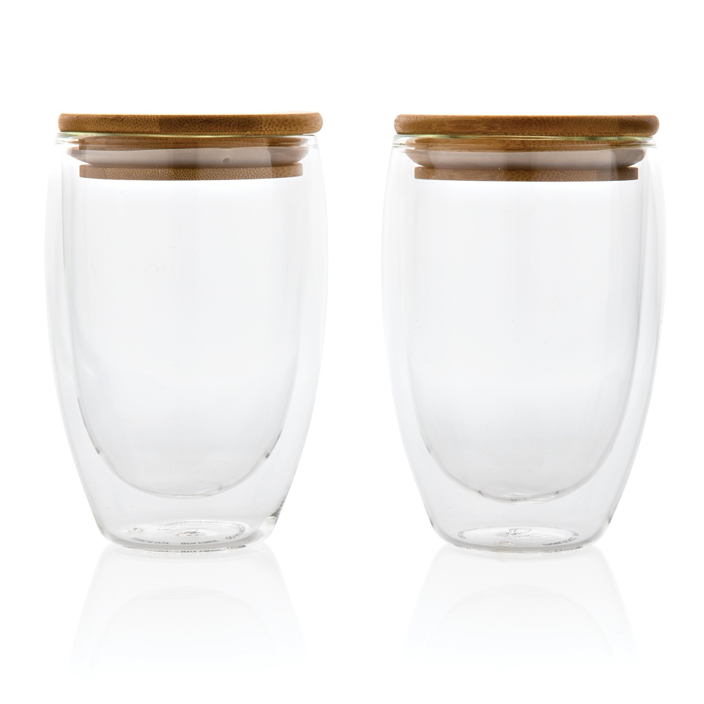 Logo trade promotional items image of: Double wall borosilicate glass with bamboo lid 350ml 2pc set