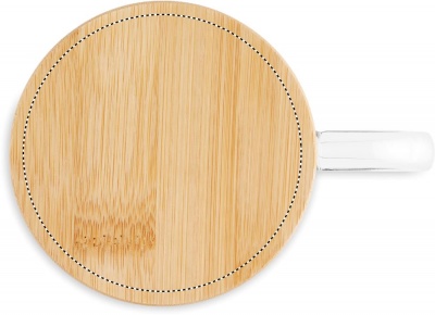 Double wall borosilicate mug with stars design and bamboo lid. Capacity: 220 ml. Bamboo is a natural product, there may be slight variations in colour and size per item, which can affect the final decoration outcome.