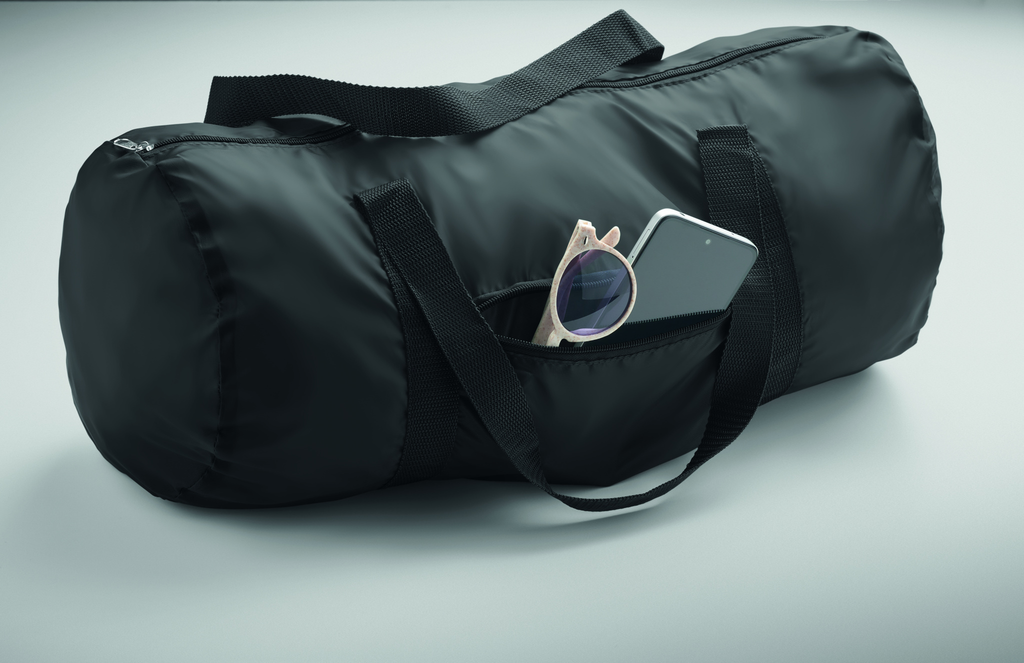Duffle bag in RPET 190T polyester with zipper pocket on front side. Capacity 20L.