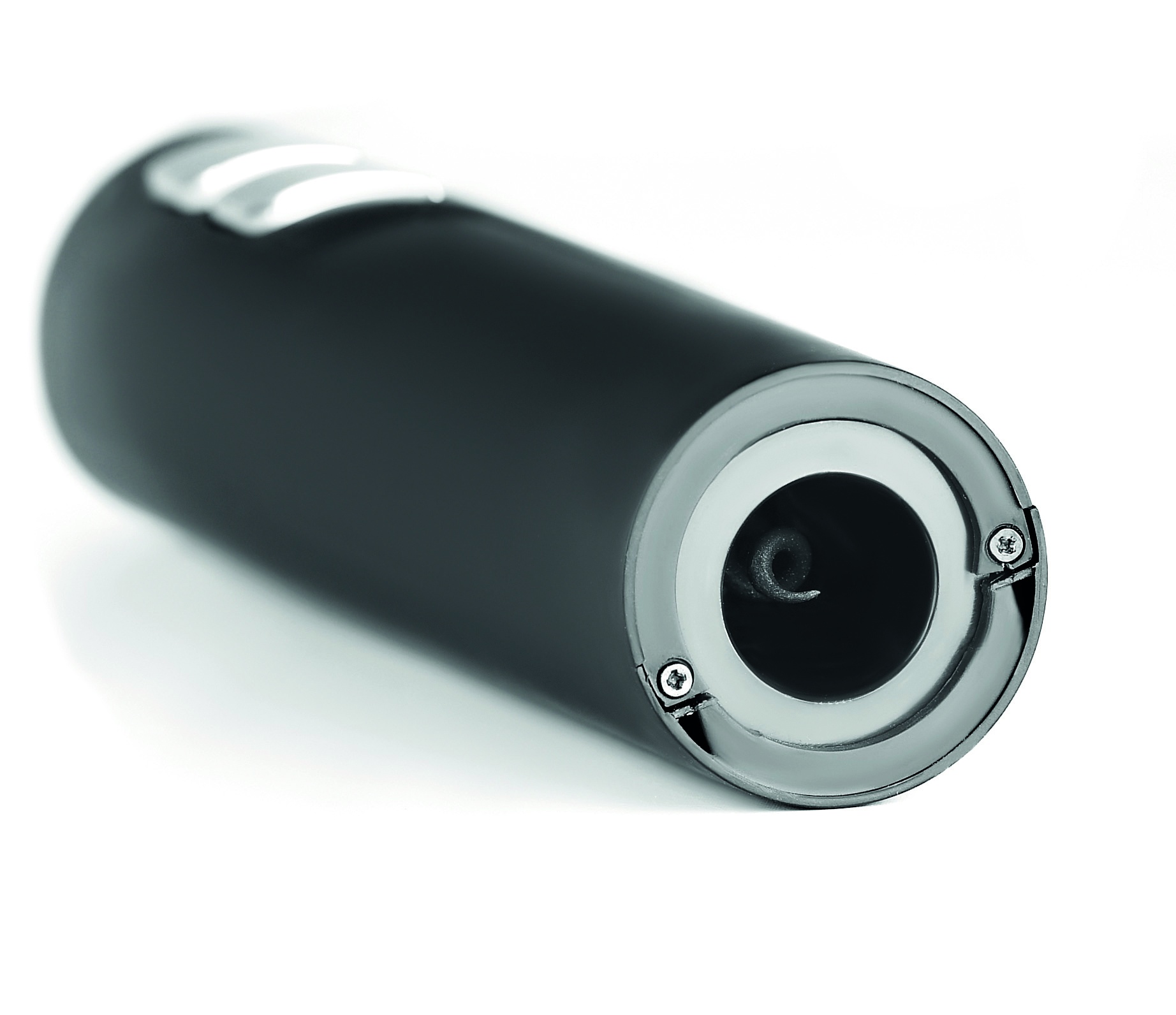 Electric wine bottle opener in ABS housing in black matt finish. Includes a foil cutter stand. 4 AA batteries not included.