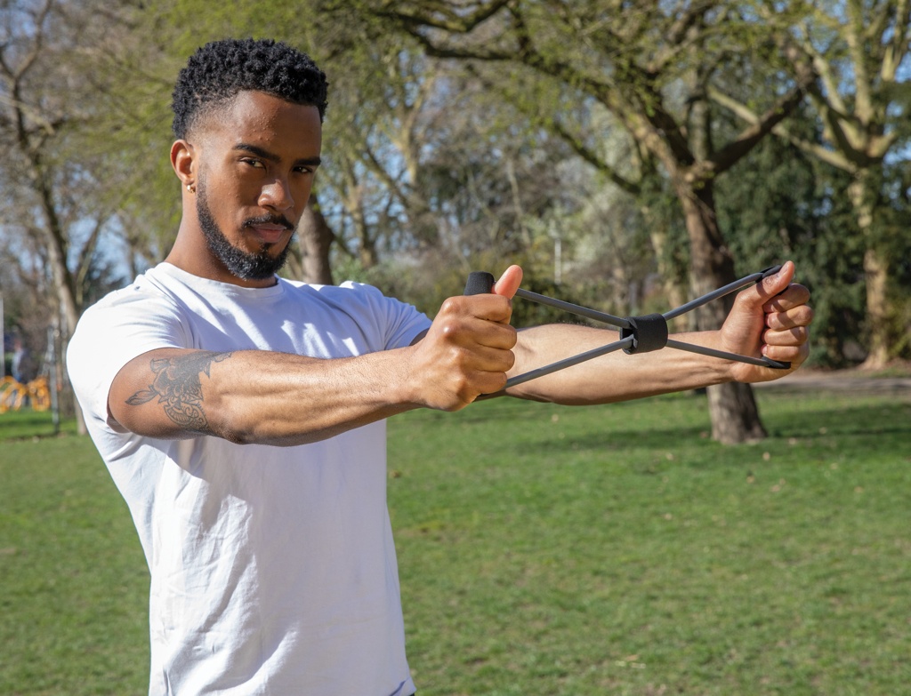 This figure 8 shape exercise band is a great fitness tool. Strengthen your muscles with this compact and convenient exercise band! Easy to carry and toss into any bag, you can take it anywhere to stay in shape. Including a manual with exercises so you can start exercising! Comes in a convenient pouch for easy carrying.