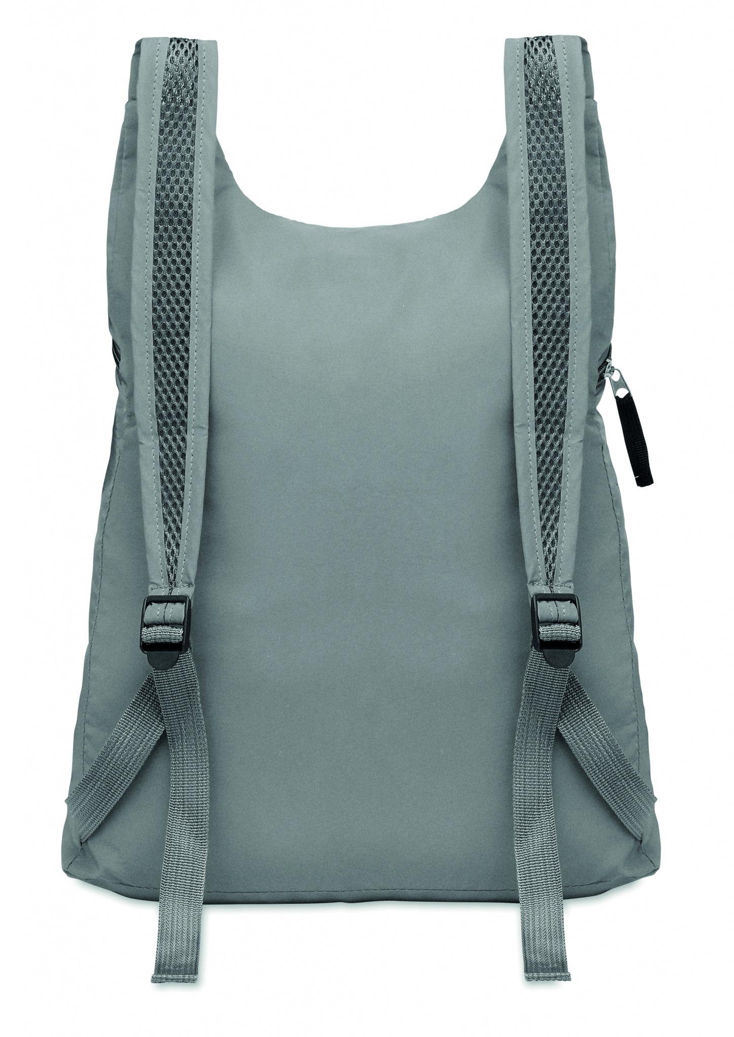 Foldable sports backpack in high reflective 190T polyester with zippered front pocket. Adjustable shoulder straps.