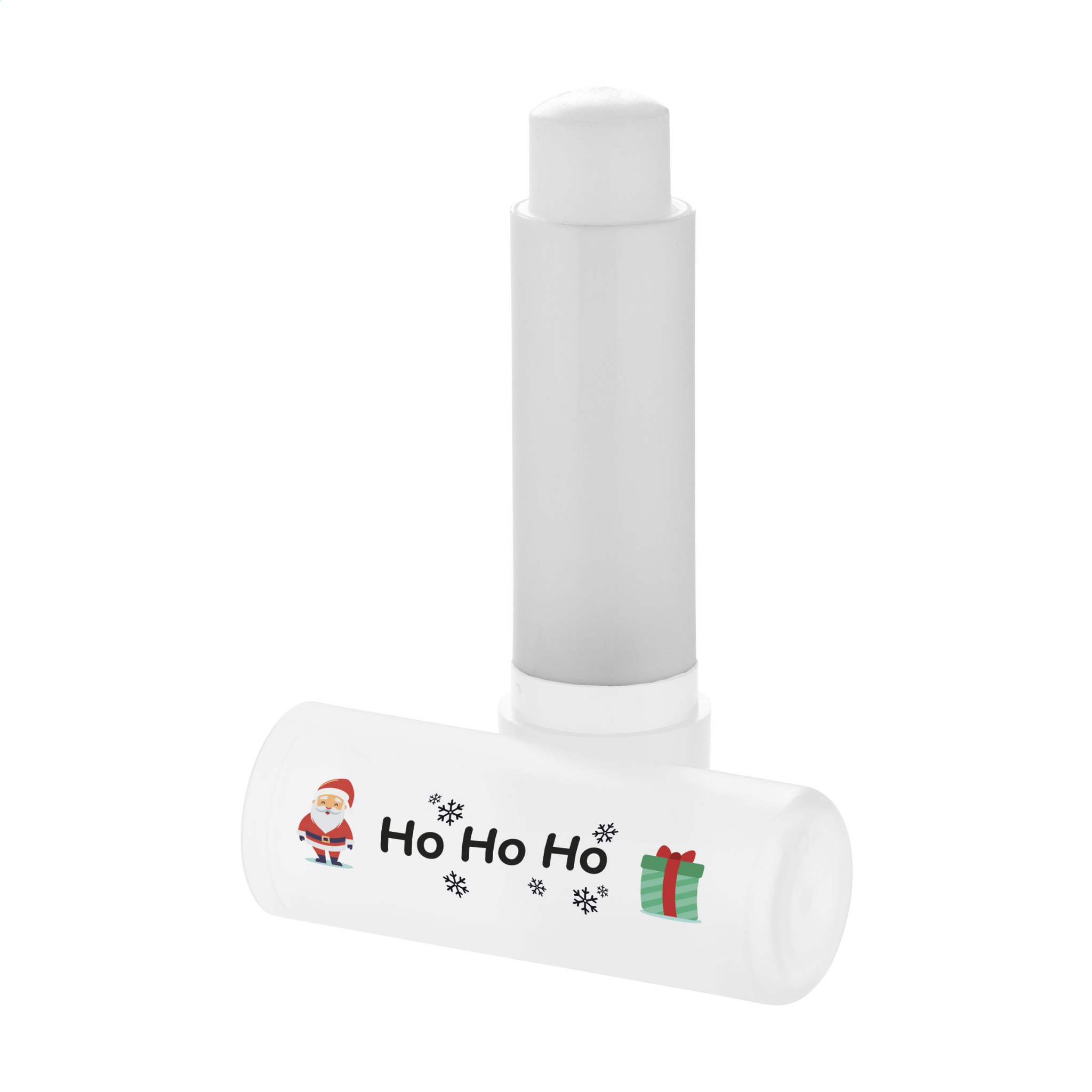 Lip balm in modern matte-transparent colours, black or white holder. No Sun Protection Factor. - This product is printed with a standard Christmas design. Choice of 6 different designs as shown in the images. It is not possible to customize a design. Ingredients: Petrolatum, Paraffinum Liquidum, Ozokerite, Polyisobutene, Butyrospermum Parkii Butter, Hydrogenated Microcrystalline Cera, Cera Alba, Hydrogenated Palm Acid, Stearyl Stearate, Tocopheryl Acetate, Parfum, Citric Acid, Methylparaben, Propylparaben, Benzyl Alcohol, Limonene.