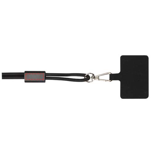 Funi recycled plastic smartphone lanyard with built-in data sync and 100W fast charge 5-in-1 cable, Solid black
