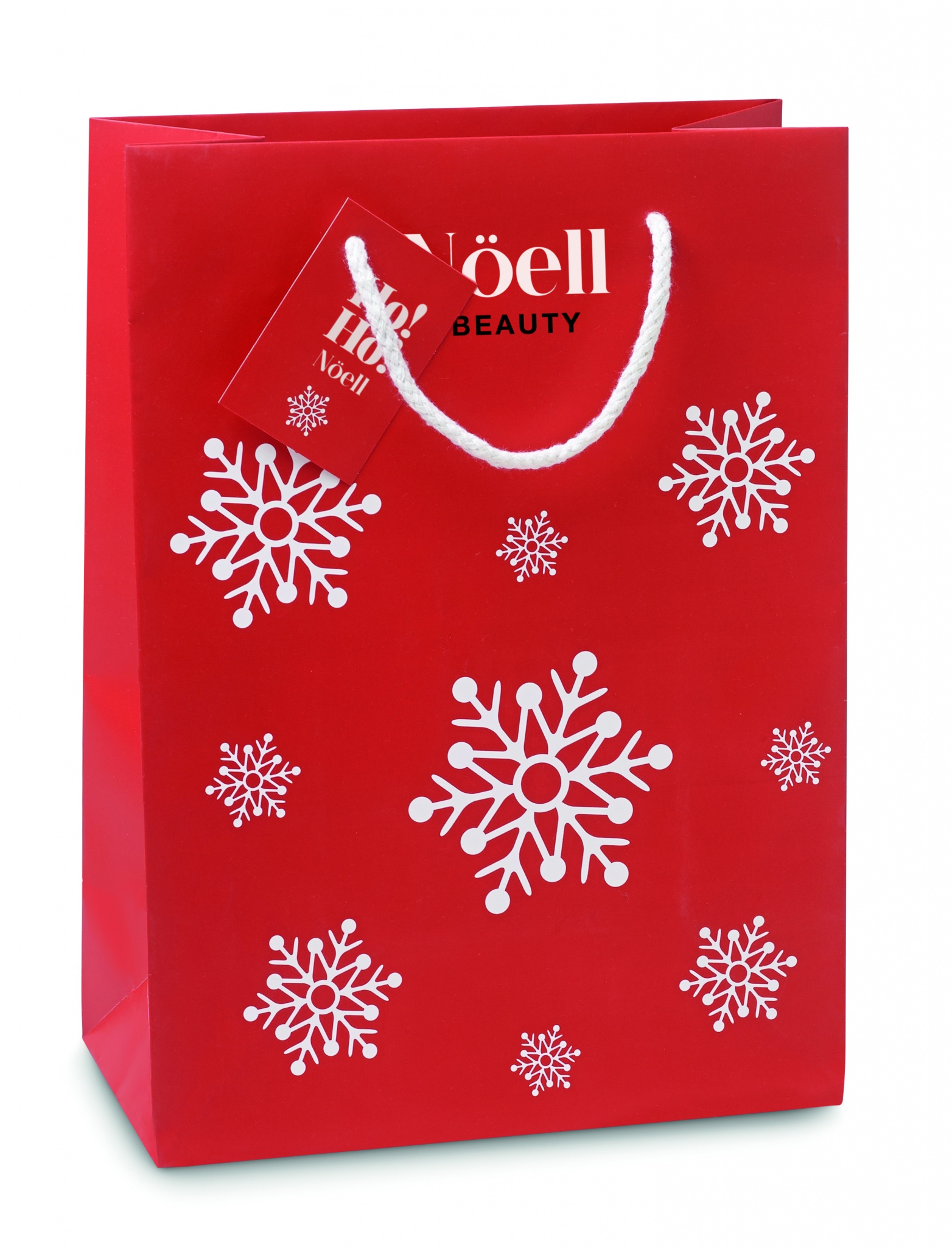 Elegant gift paper bag with snowflakes pattern. Gift tag included. Medium size.