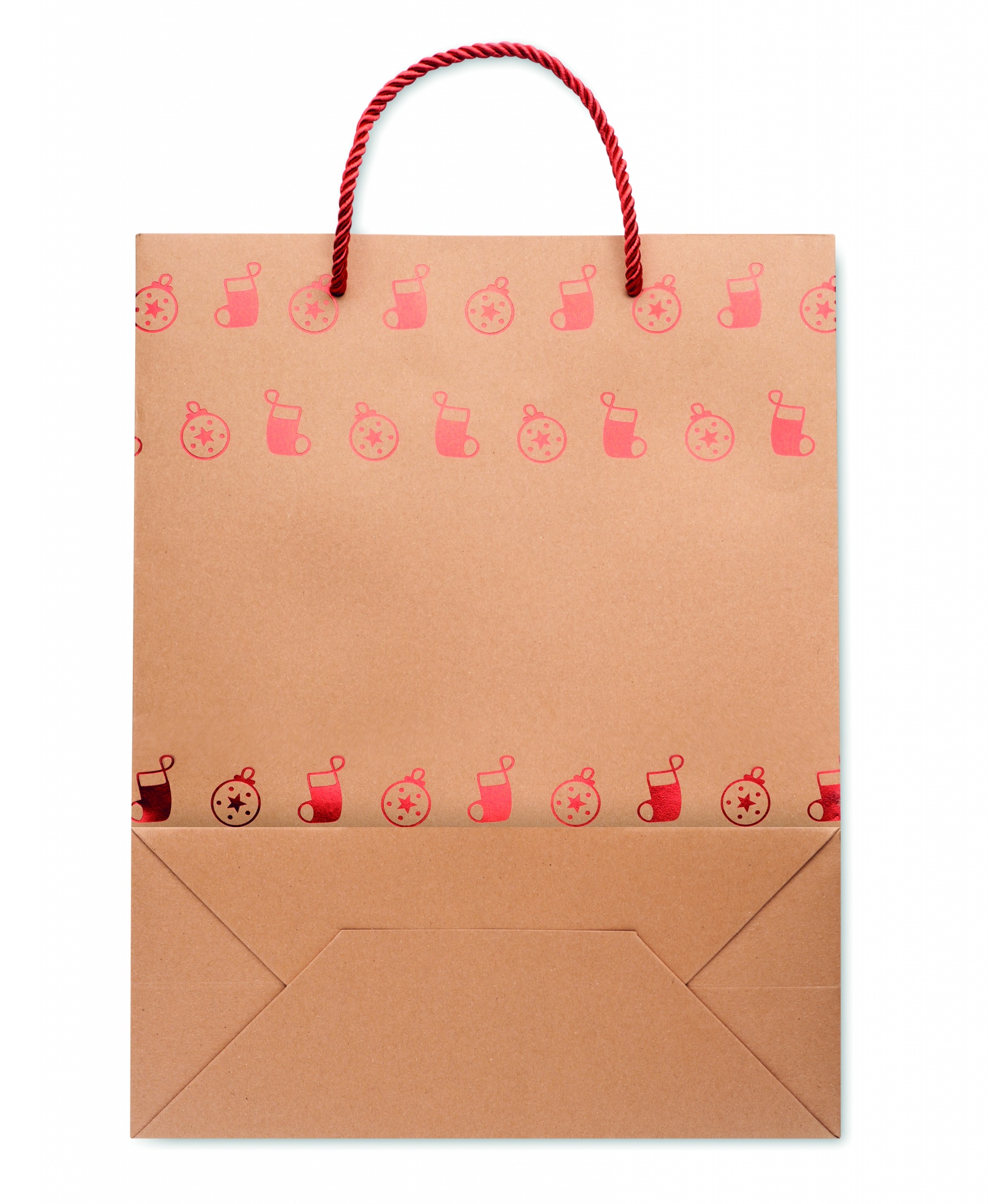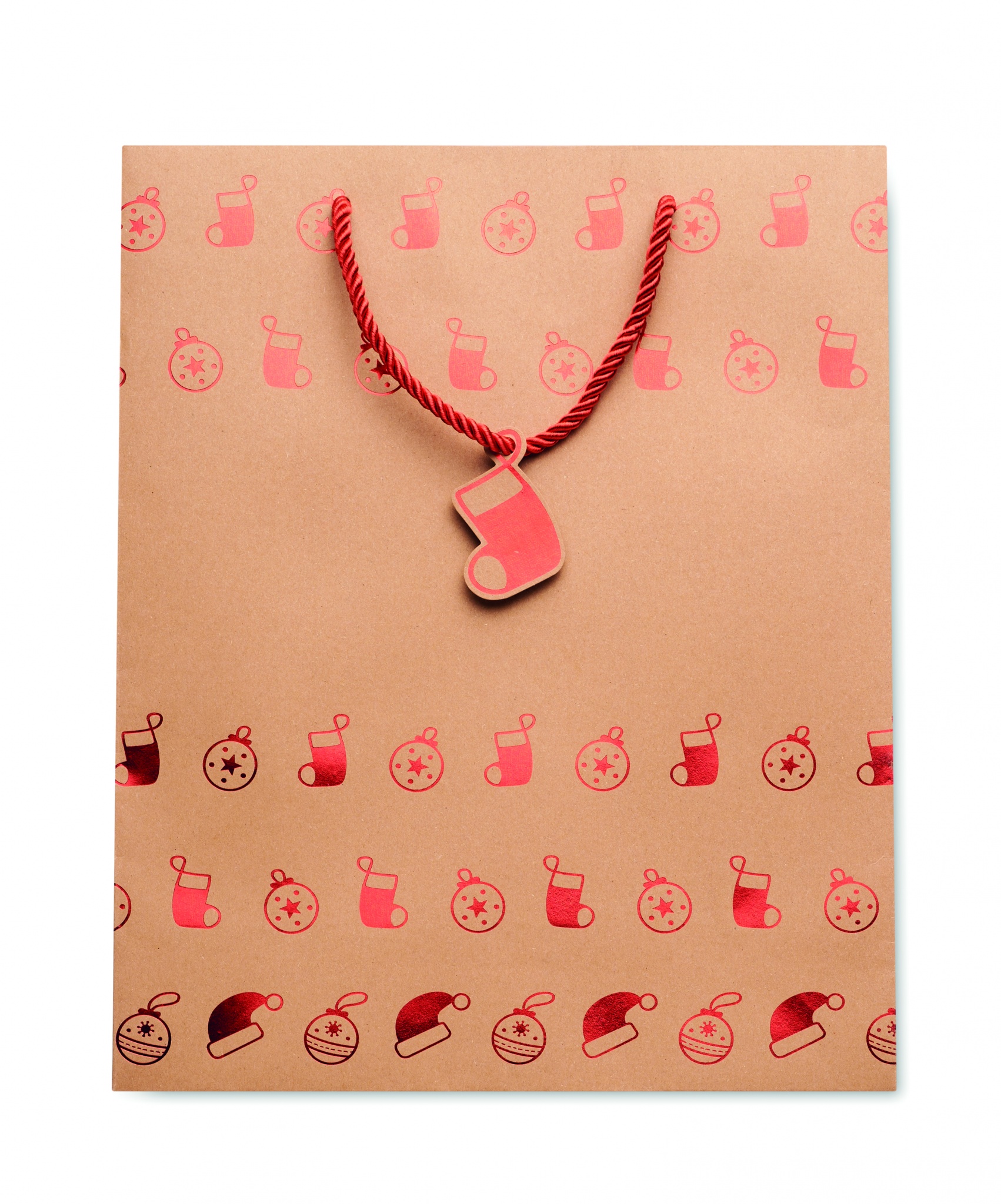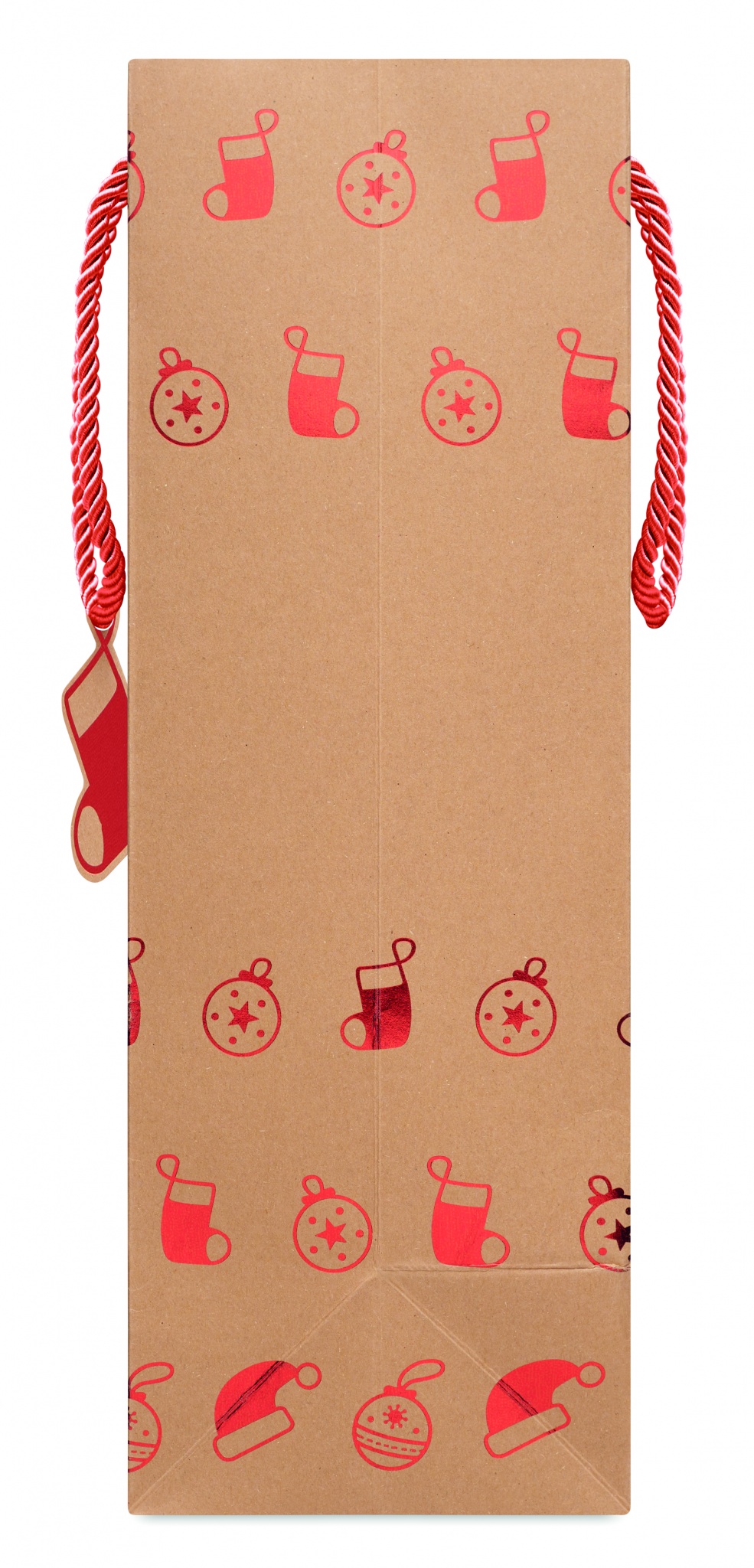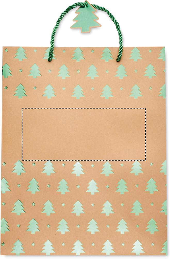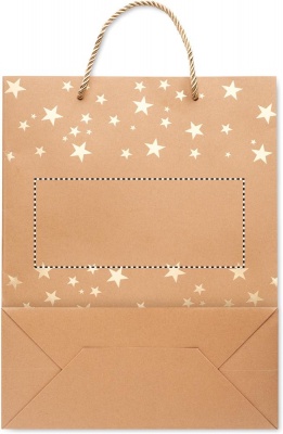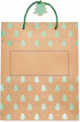 Elegant gift kraft paper bag with seasonal pattern. Gift tag included. 250 gr/m².
