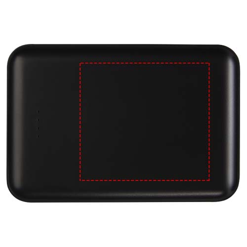 Flat and durable power bank with a 5000 mAh polymer battery. Can be laser engraved on the front panel, which will light up the logo when the power bank is turned on or being used. Output: 5V/2A. Input: 5V/2A. No accessory cable provided for sustainability purposes.