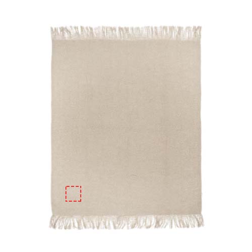 Ultra-soft GRS certified RPET blanket, wrapped with a 190T RPET ribbon. Packed in a recycled polybag. Fringes length: 10 cm on each side. Ribbon size: 72 cm x 4 cm.