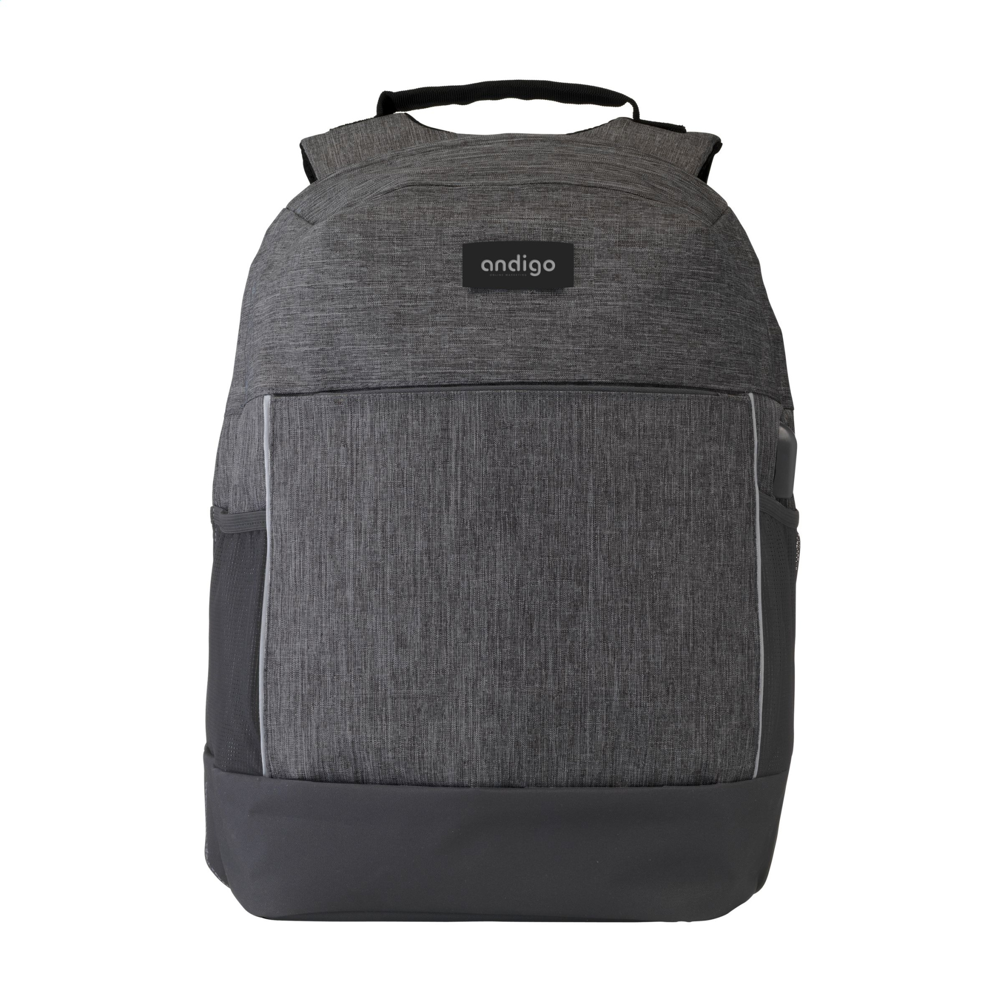 Very complete, weather-resistant and secure anti-theft backpack made from 300D Oxford 2-tone polyester. With hidden zippers on the back that hinder pickpocketing and undesired access to the contents. The large main compartment, which can be almost fully opened, has foam compartments for a laptop up to 15.6” and for a tablet up to 12”, a zipper compartment and various pockets. The front of the backpack has a zipper compartment, reflective highlights for safety in the dark and mesh pockets on the side for carrying a drinking bottle. Both the back and the adjustable shoulder straps are fitted with sturdy foam and have a mesh structure finish. The top and both shoulder straps incorporate concealed RFID-blocking zipper pouches that prevent ‘skimming’. With a reinforced base, carrying strap and an extra strap for attaching the backpack to a trolley. Includes USB connection with charging cable. The bag has a beautiful finish, is weather resistant and perfectly lined, and the wearing comfort is guaranteed. Capacity approx. 20 litres.