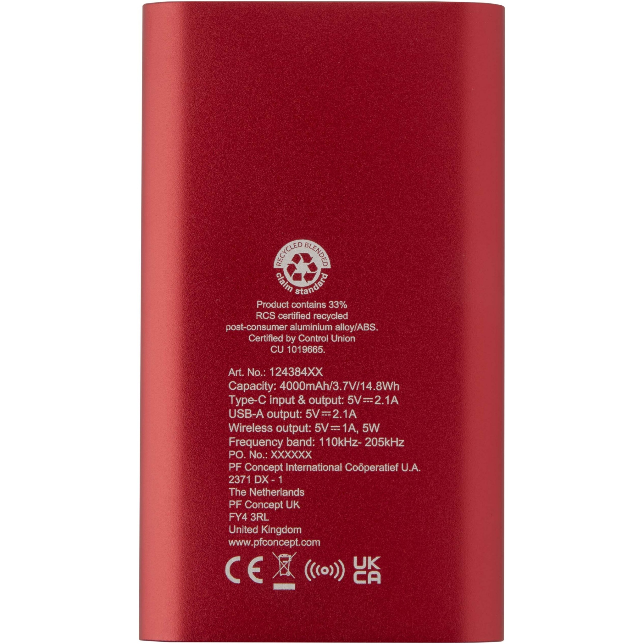 Juice 4000 mAh Type-C recycled aluminium wireless power bank , Red