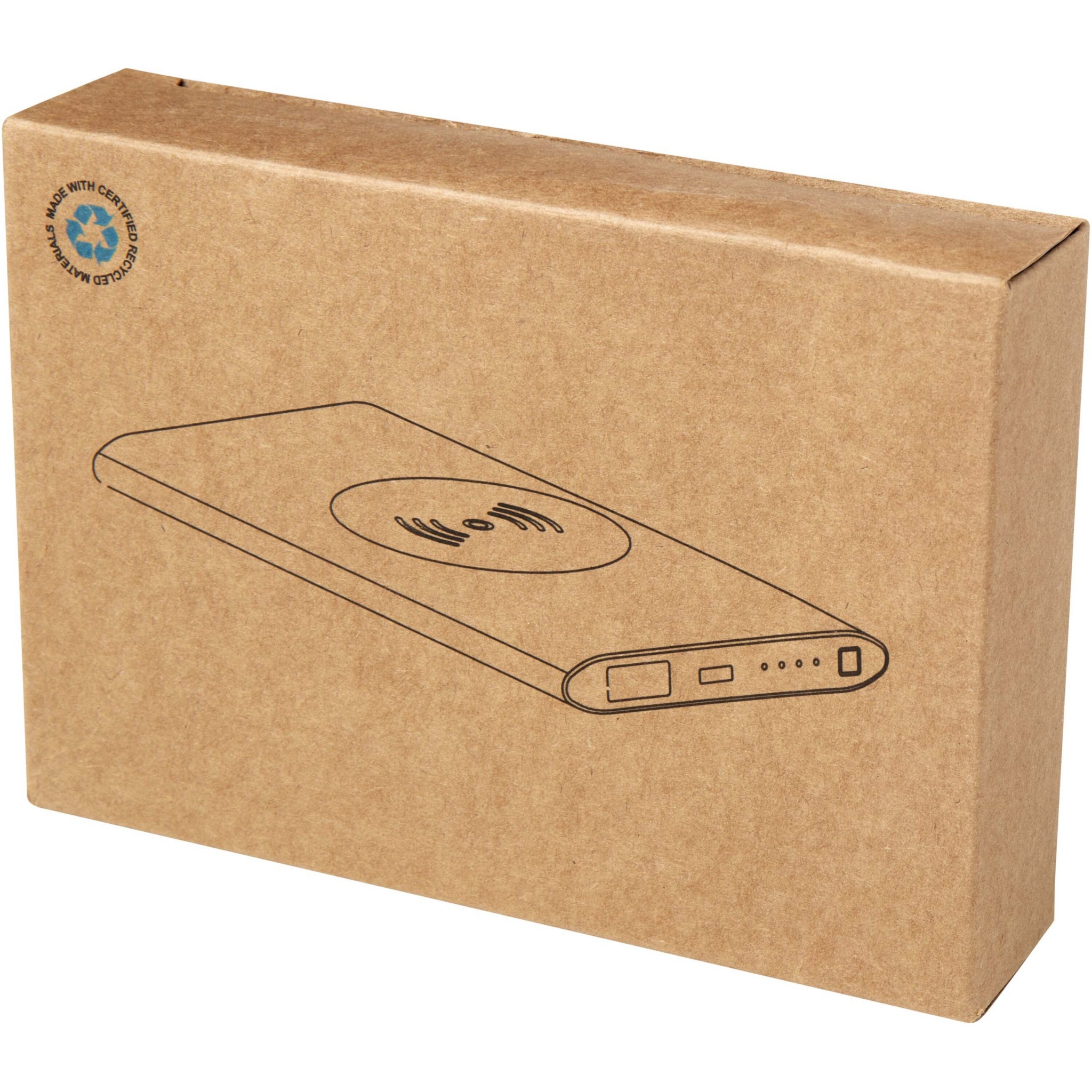 Power bank with Type-C in/output port and a USB-A port which means that 2 devices can be charged simultaneously. It also supports 5W wireless charging for all Qi enabled devices. The power bank features a 4000 mAh lithium polymer battery which delivers a total output power of max. 10W. This power bank is made of 28% RCS certified recycled plastic. Delivered with a TPE Type-C to USB-A charging cable.