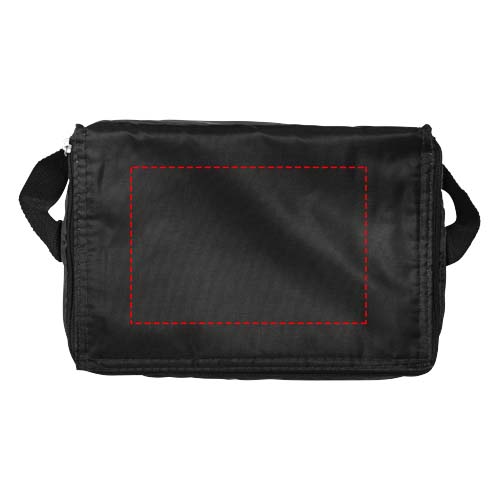 Zippered main compartment with a slash front pocket. Shoulder strap. Insulated PEVA lining. Accessories not included.