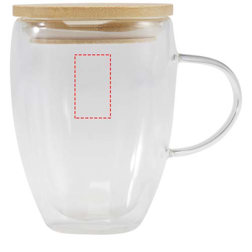 350 ml double-walled glass cup providing insulation, keeping drinks warm for longer. The included bamboo lid provides additional insulation, helps prevent spills and preserve the drink’s aroma, making it a practical choice for daily use.