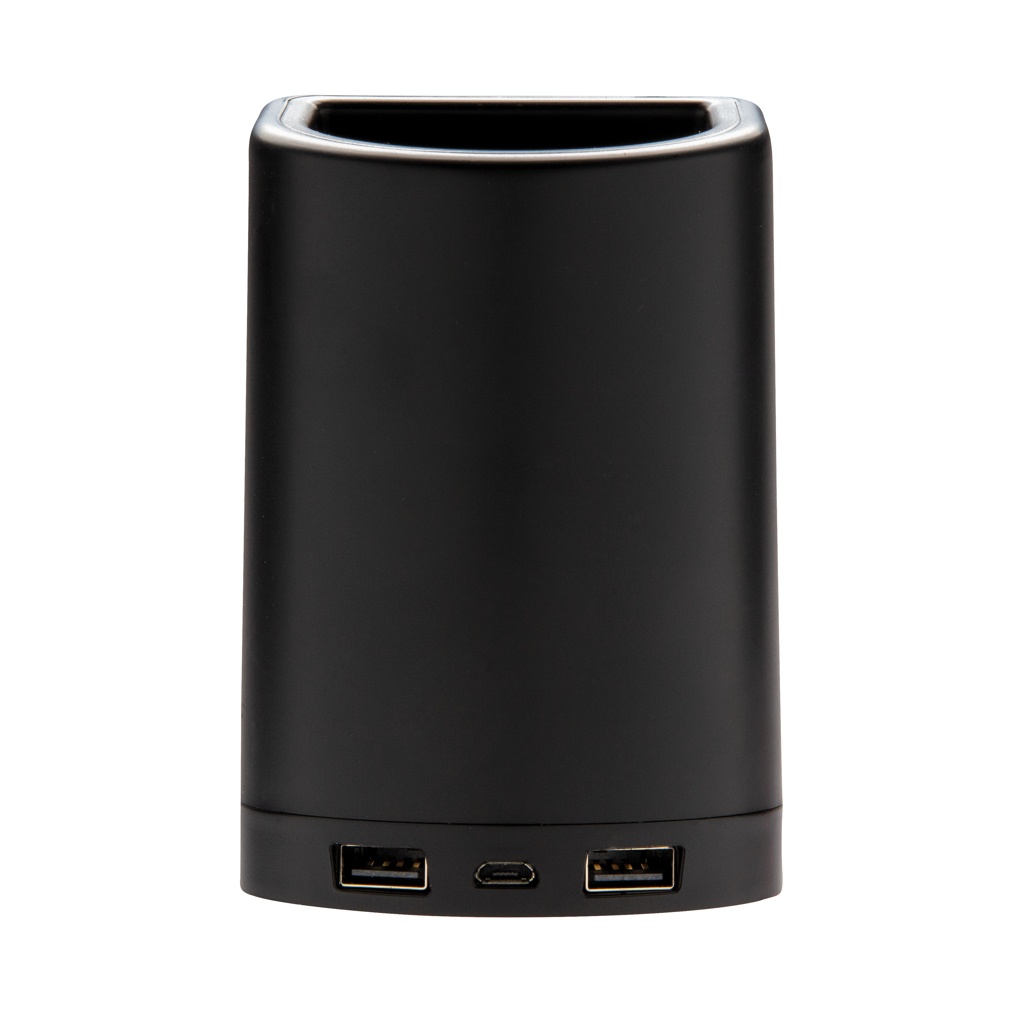 Light up logo 5W wireless charging pen holder, black