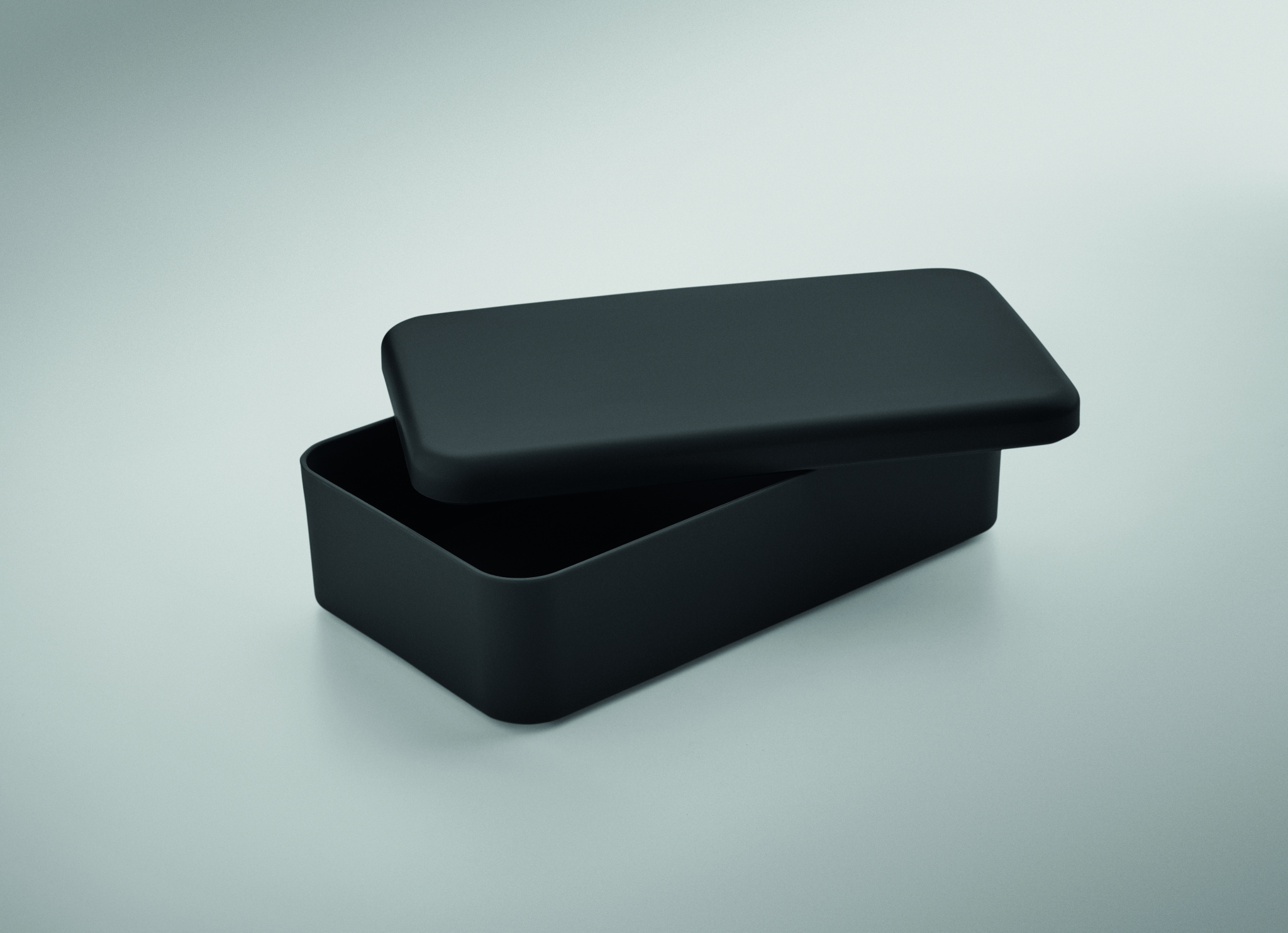 Lunch box in PP with RPET elastic band closure. Capacity: 750 ml.